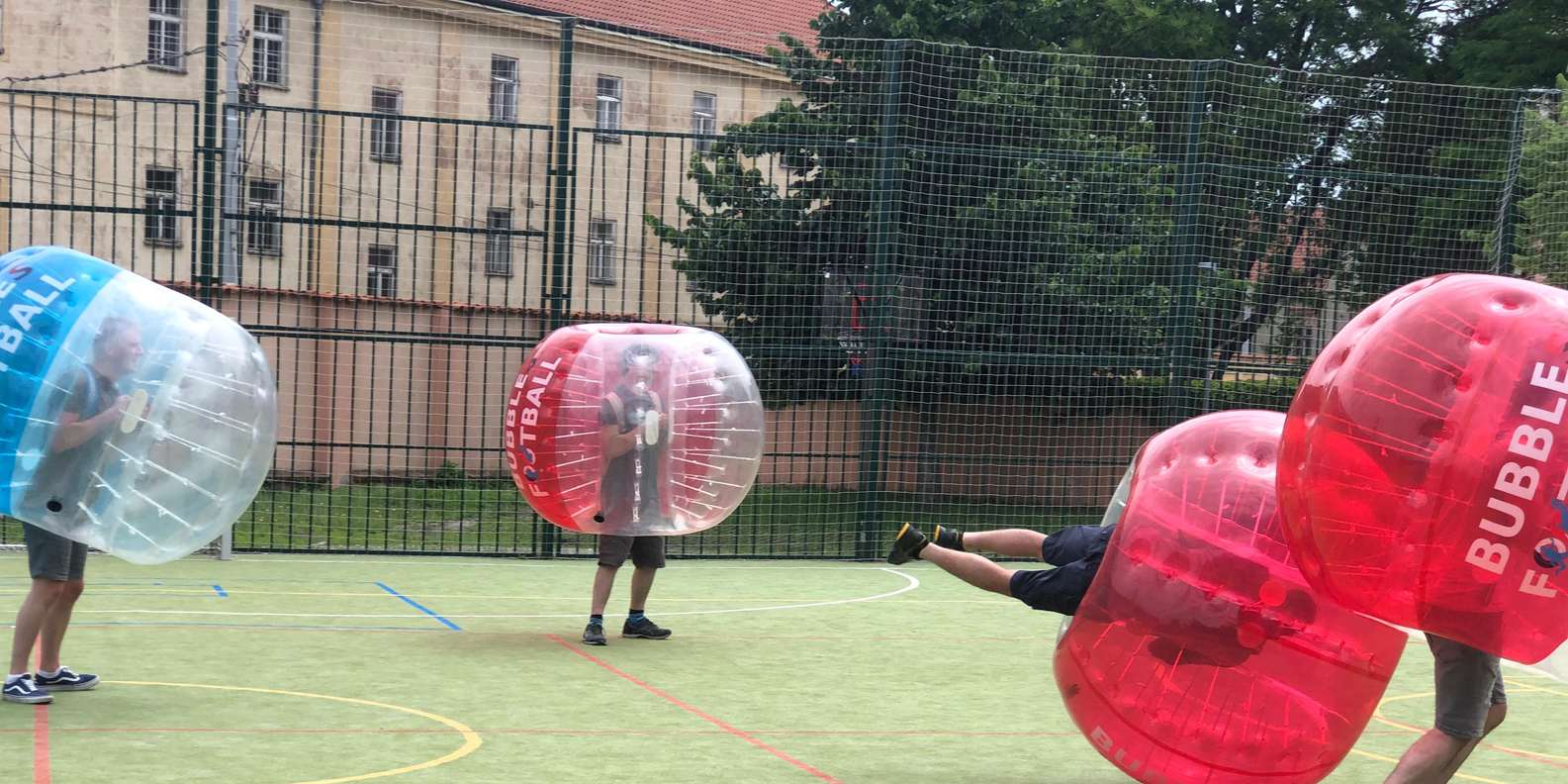 Wir treffen uns auf dem Spielfeld. Wir zeigen dir die Umkleidekabine, wo du dich in Sportkleidung umziehen kannst. Ihr macht eine Strecke auf dem Spielfeld und wir erklären euch die Regeln und die Sicherheit des Spiels. Wer möchte, kann sich die Knieschoner ausleihen, die wir für ihn vorbereitet haben. Wir zeigen dir die Startposition für jedes Spiel und schon kann der mindestens einstündige Spaß beginnen. Die ganze Zeit über wird der Schiedsrichter das lustige Spiel kontrollieren. Während des Spiels wird es verschiedene Erfrischungen geben. Nach Absprache mit den Spielern können auch andere Spiele wie Bubble Football, British Bulldock und Last man standing ausprobiert werden.