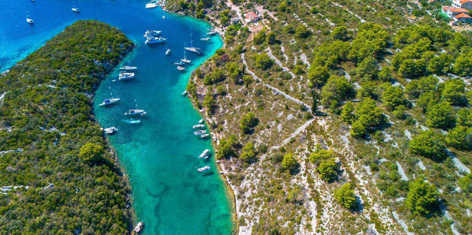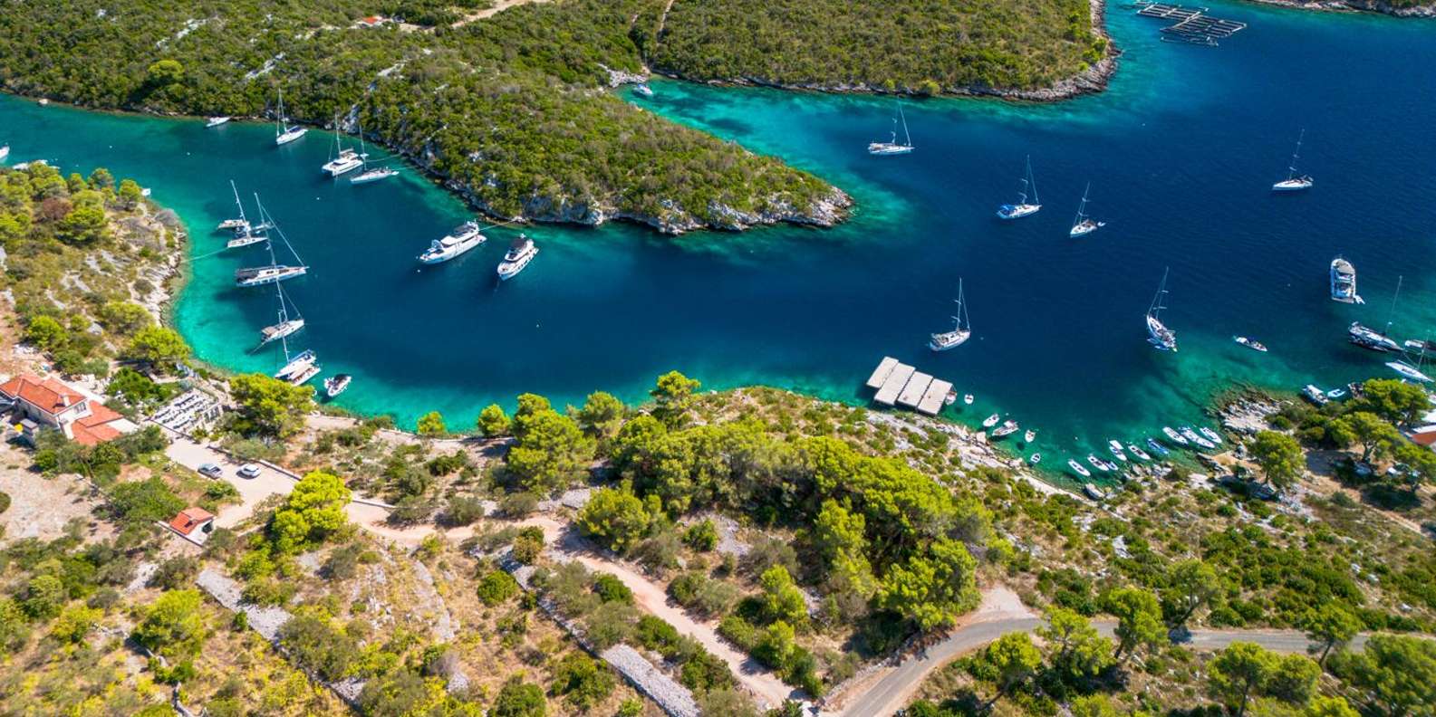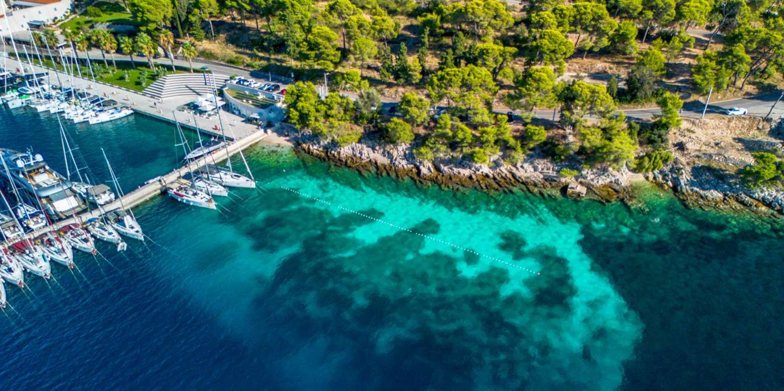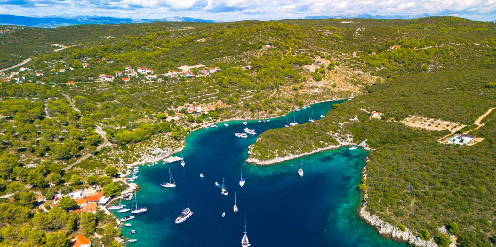 Deine Reise beginnt an der berühmten Blauen Lagune von Šolta, die für ihr türkisfarbenes Wasser und die perfekten Bedingungen zum Schwimmen und Schnorcheln bekannt ist. Entspanne dich im kristallklaren Meer, genieße die Sonne oder erkunde die lebendige Unterwasserwelt.