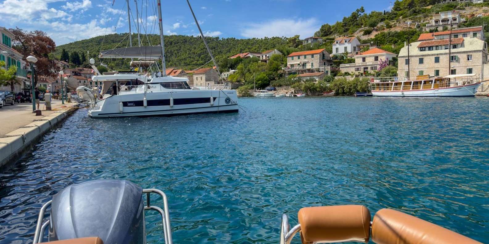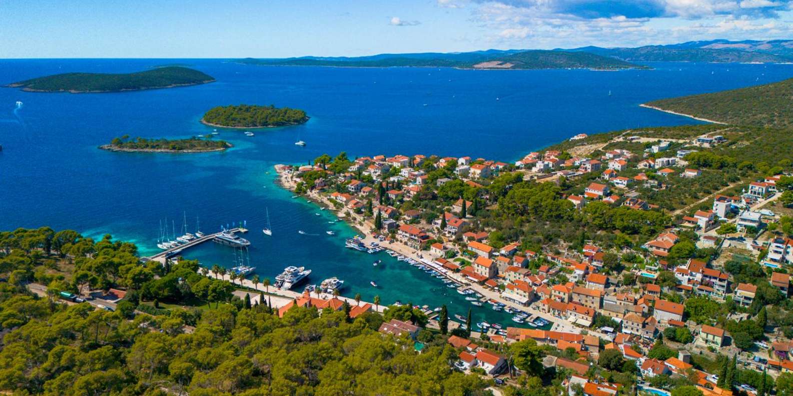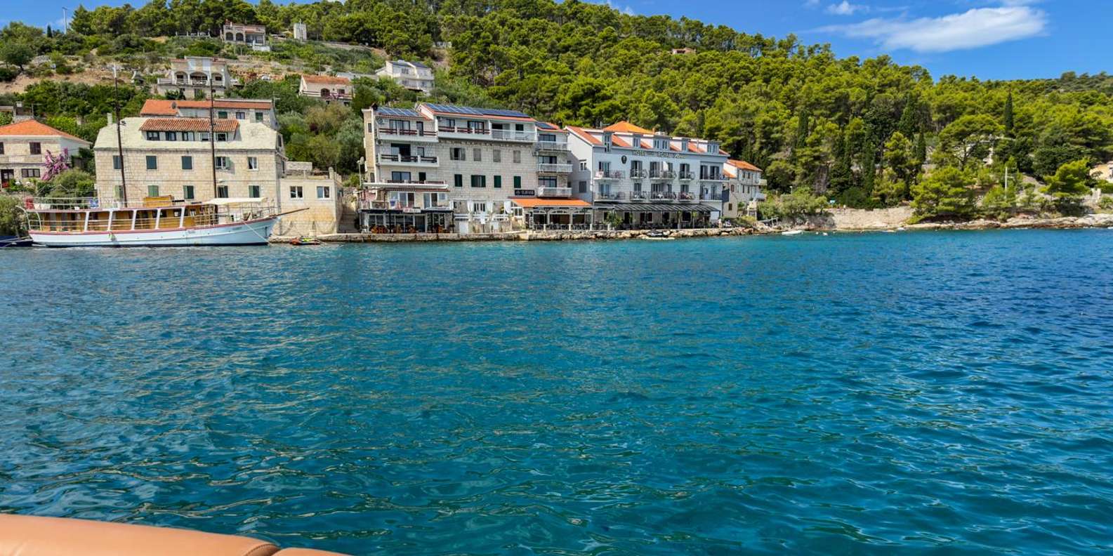 Als Nächstes geht's nach Maslinica, einem charmanten Küstendorf mit authentischer dalmatinischer Atmosphäre. Spaziere entlang der Promenade, stöbere in kleinen lokalen Geschäften oder genieße einen Kaffee am Wasser, während du die Inselatmosphäre genießt.