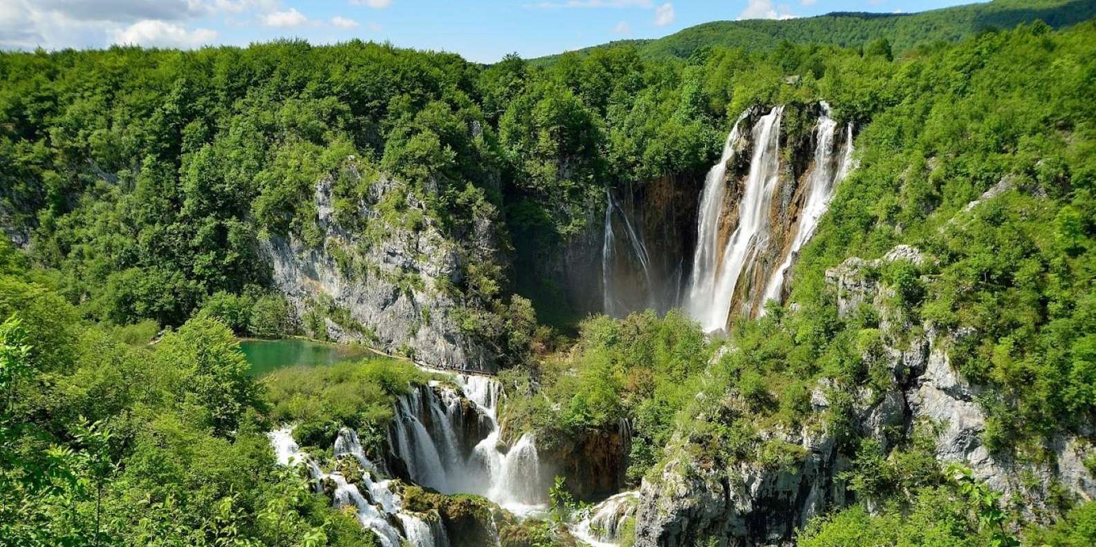 Sechzehn Seen, die durch 92 Wasserfälle miteinander verbunden sind, stürzen sich in die malerische Umgebung. Die Plitvicer Seen wurden 1949 zum Nationalpark erklärt und stehen seit 1979 auf der UNESCO-Liste des Weltnaturerbes.