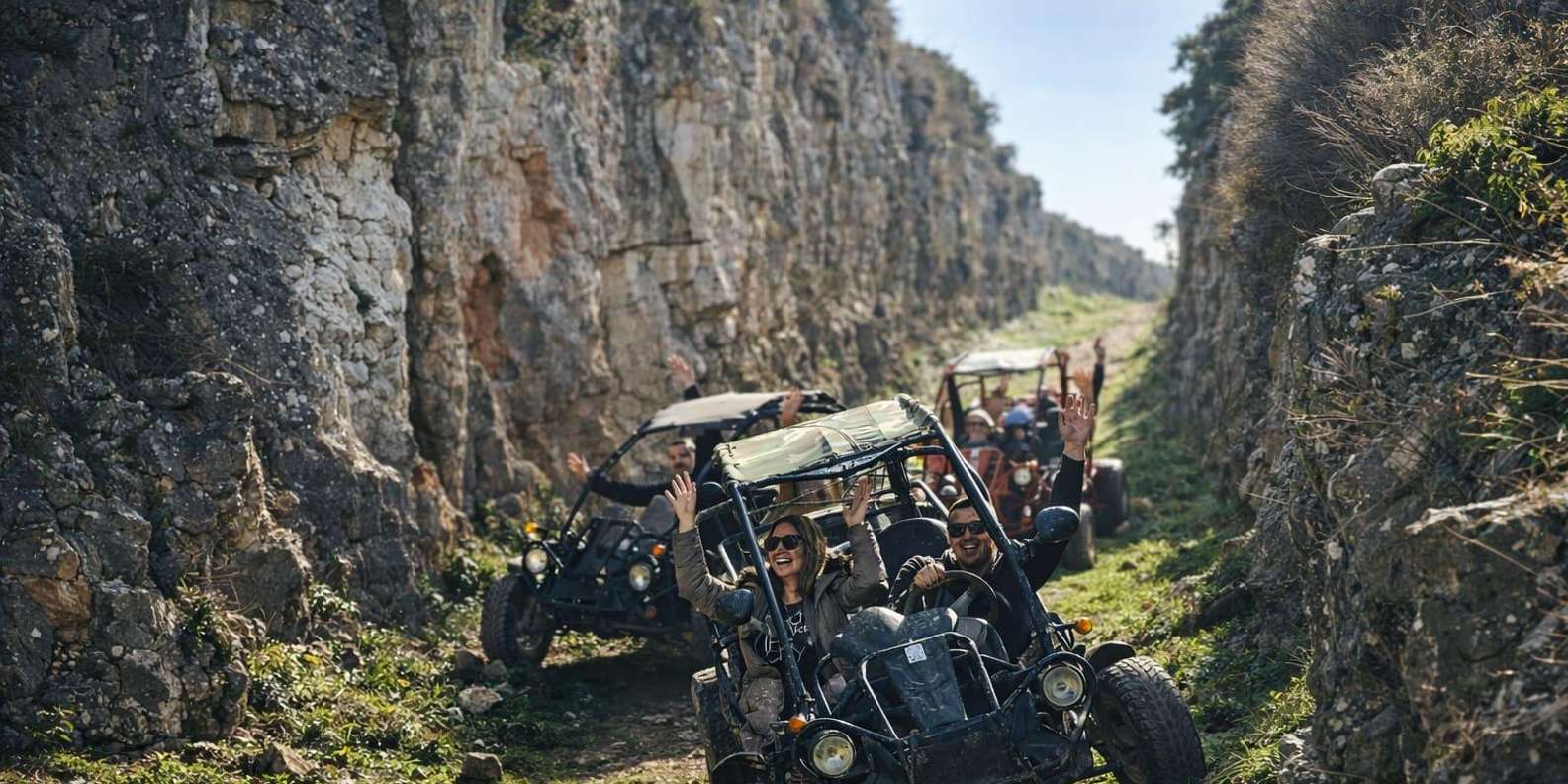 Entdecke Istrien auf die aufregendste Art und Weise – von einem Buggy aus. Beginne deine 2,5-stündige geführte Buggy-Tour in Pula und fahre nach Rt Kamenjak, einem atemberaubenden Naturschutzgebiet, das für seine wilden Landschaften, versteckten Pfade, Höhlen und das kristallklare Meer bekannt ist.