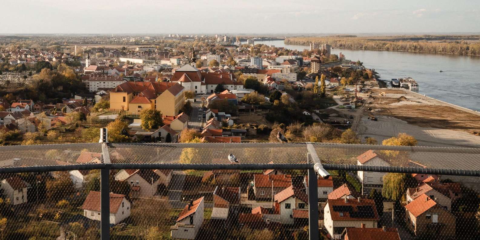 - Panorama-Ausblick auf die gesamte Stadt von der Spitze des Wasserturms von Vukovar
