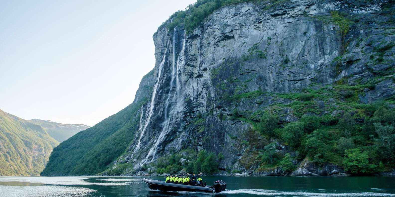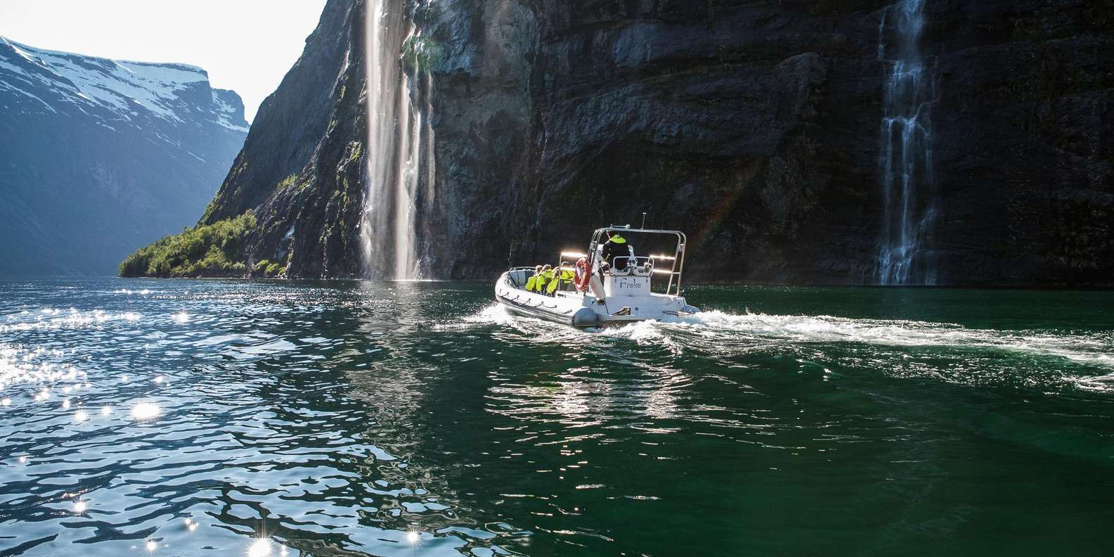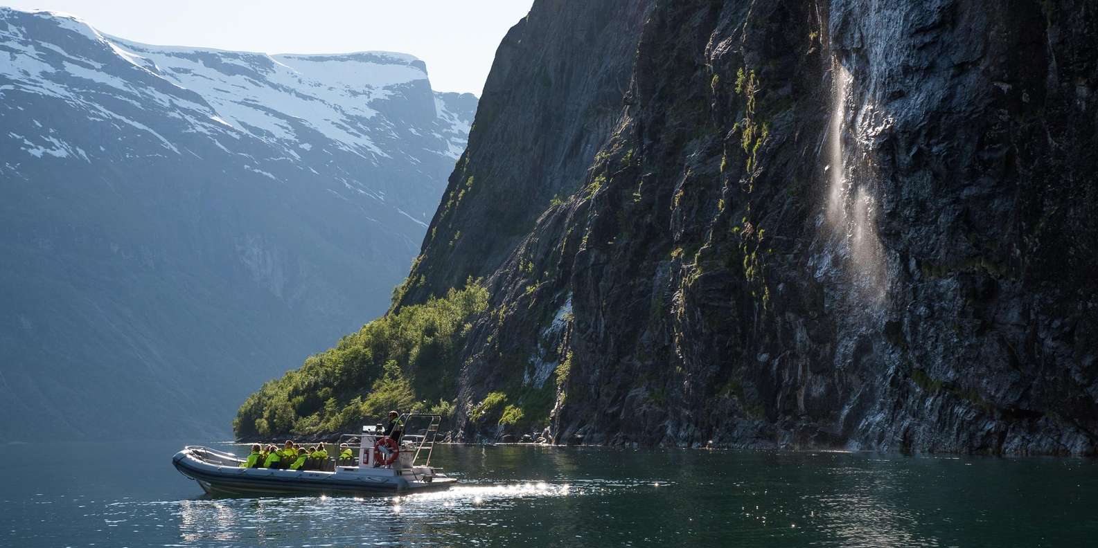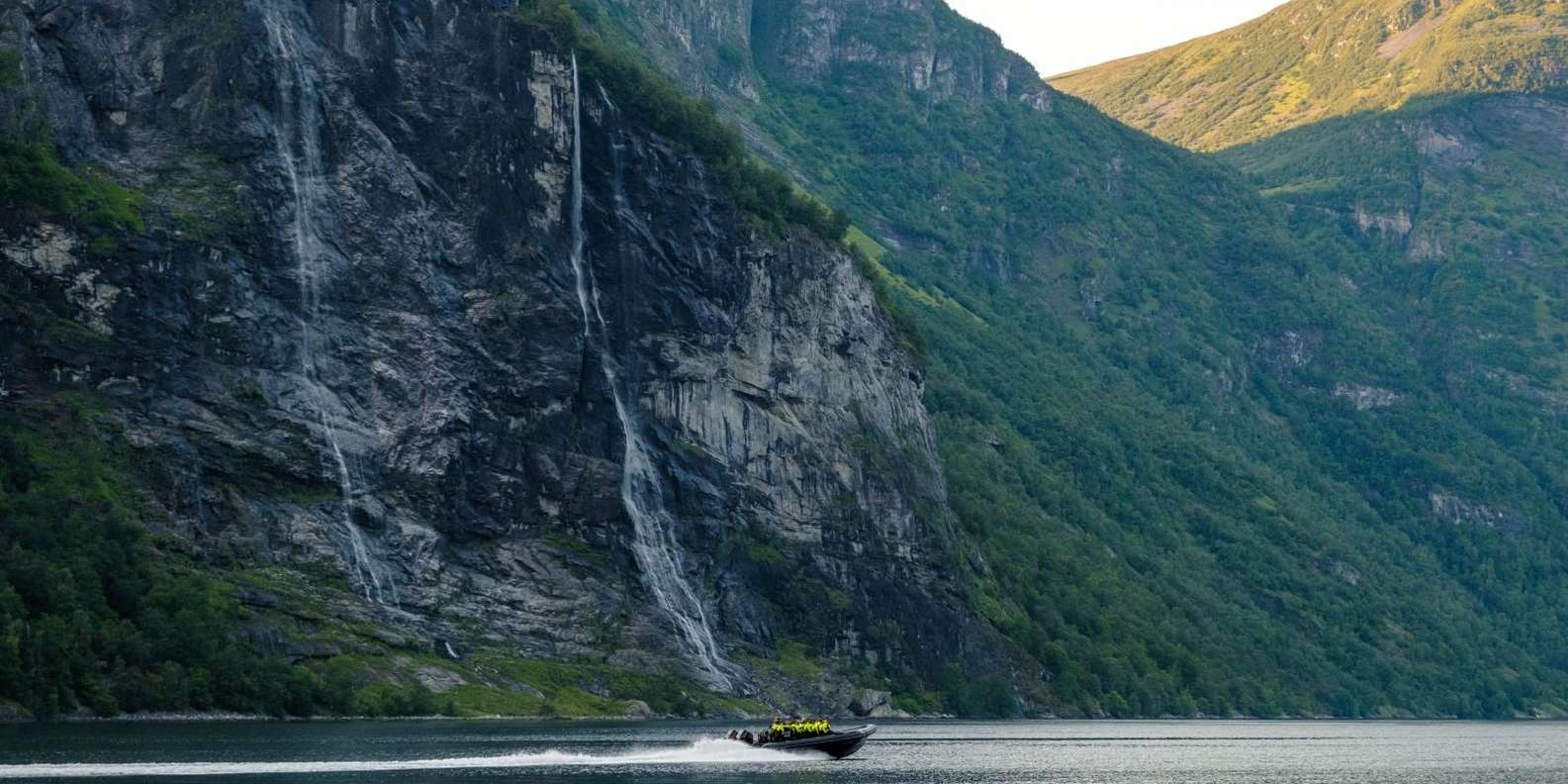 - Spüre den Wind in deinen Haaren, während du auf einem RIB durch den Geirangerfjord rast