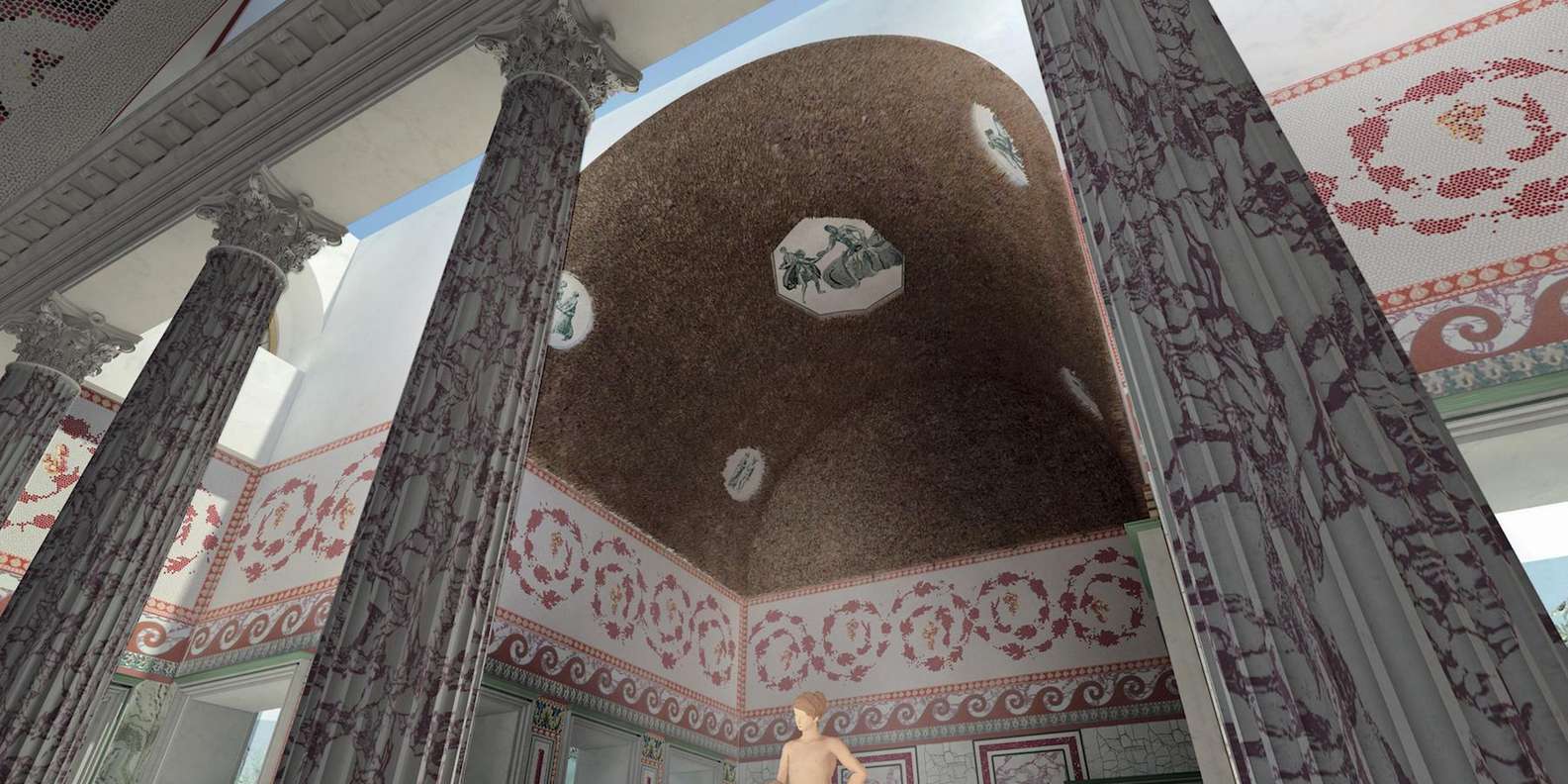 Entdecke die Domus Aurea in Rom, das berühmte goldene Haus von Kaiser Nero, auf einer Führung, die mit einem Oculus Virtual Reality Erlebnis verbunden ist. Tauche ein in den Raum des Goldenen Gewölbes, wie er zu Neros Zeiten ausgesehen haben muss.