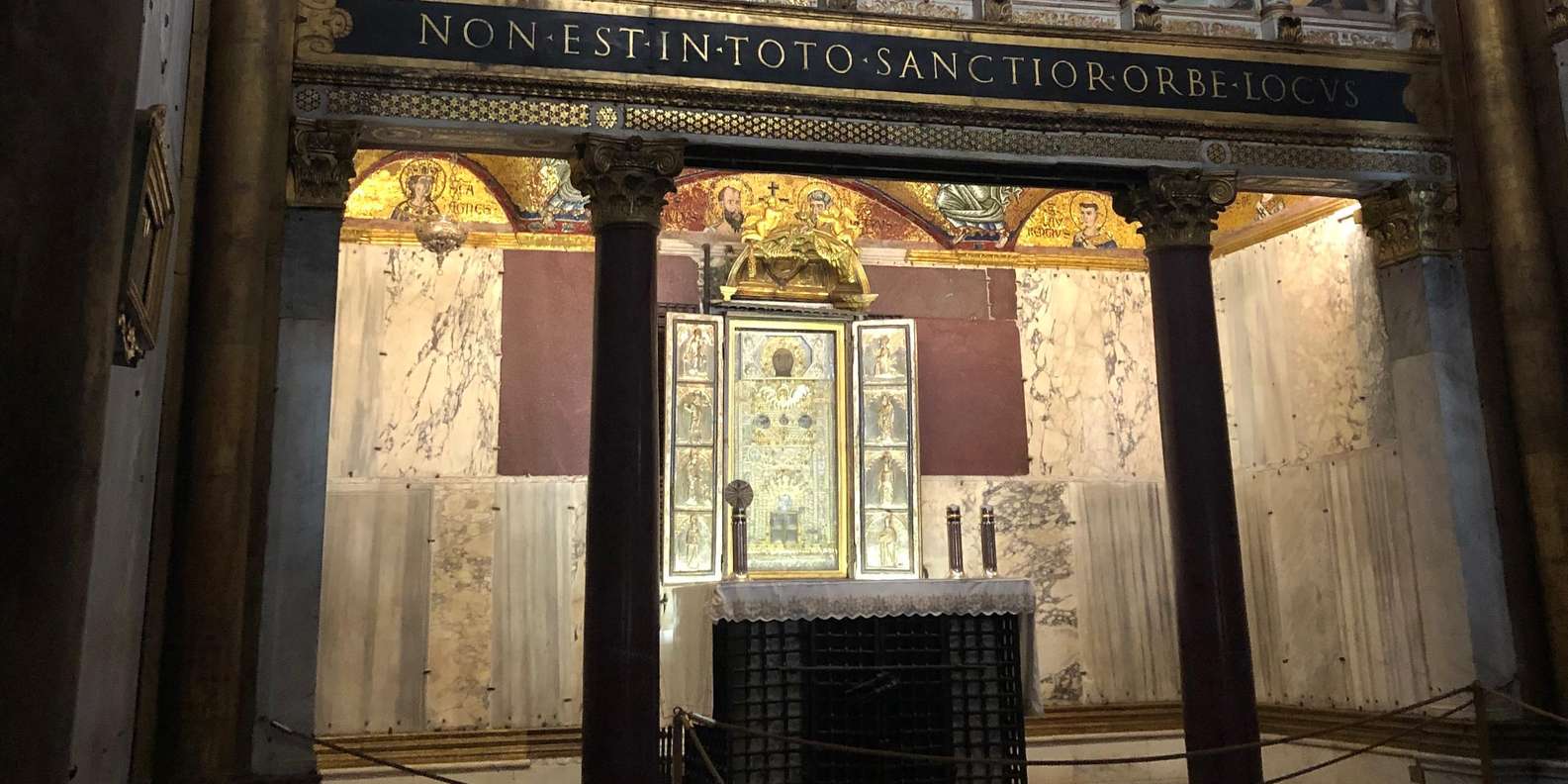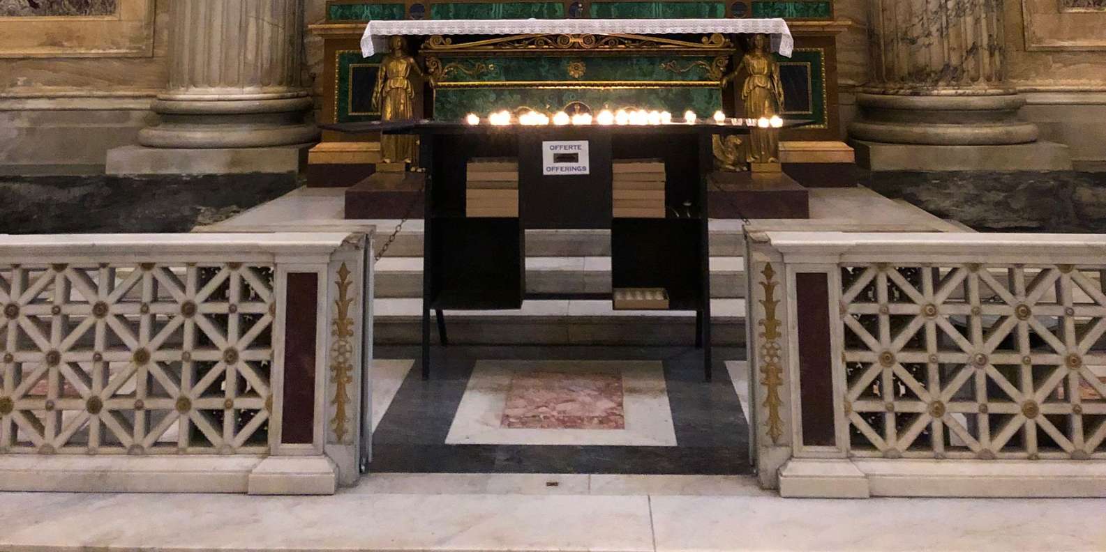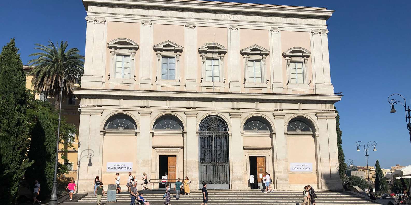 Wir werden jedoch die Heilige Treppe besuchen und unsere Tour an der gleichnamigen Kirche der Scala Sancta beginnen, die auch das Sanctorium Sancta beherbergt - auf Englisch als das Allerheiligste bekannt - eine winzige Kapelle, die früher nur Seine Heiligkeit der Papst betreten durfte.