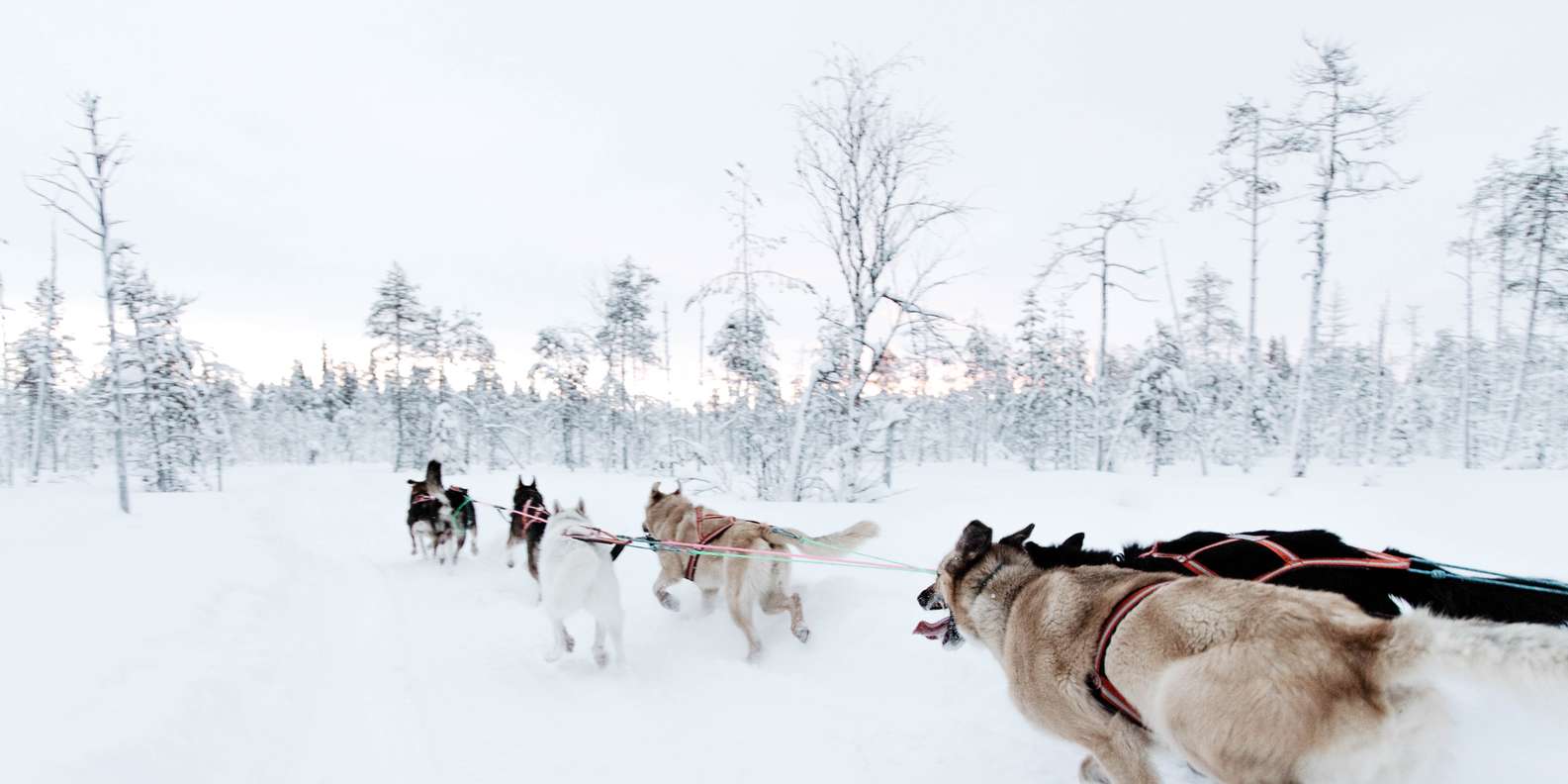 - Genieße eine schnelle Huskyfahrt (8-12 Minuten) durch den Wald im Santa Claus Village