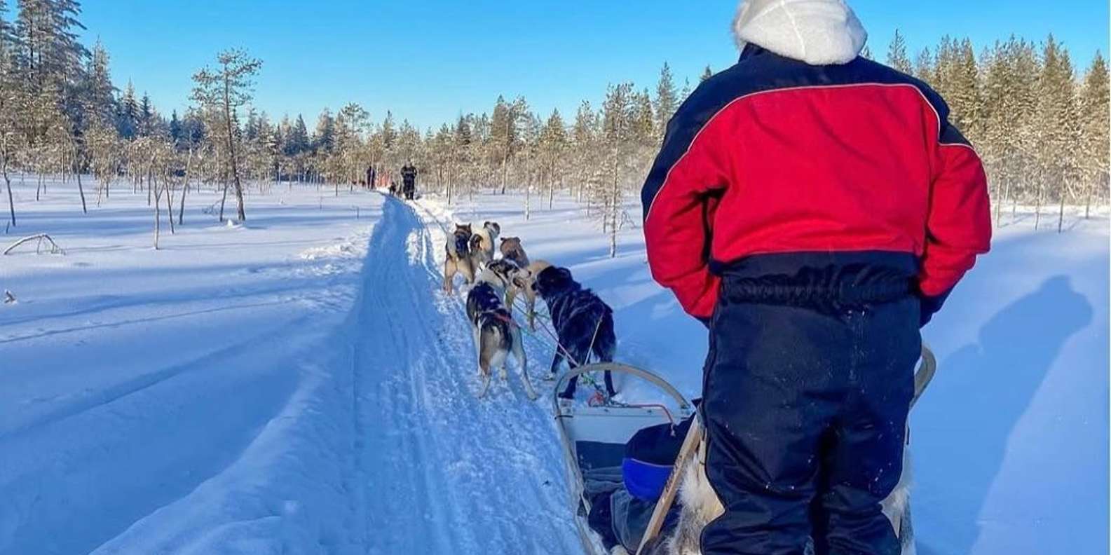 - Genieße eine 6–10 km lange Husky-Safari mit Fotostopp