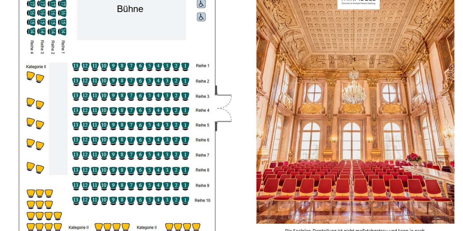 - Die Abendkasse befindet sich vor dem Marmorsaal, im 1. Stock des Schlosses Mirabell