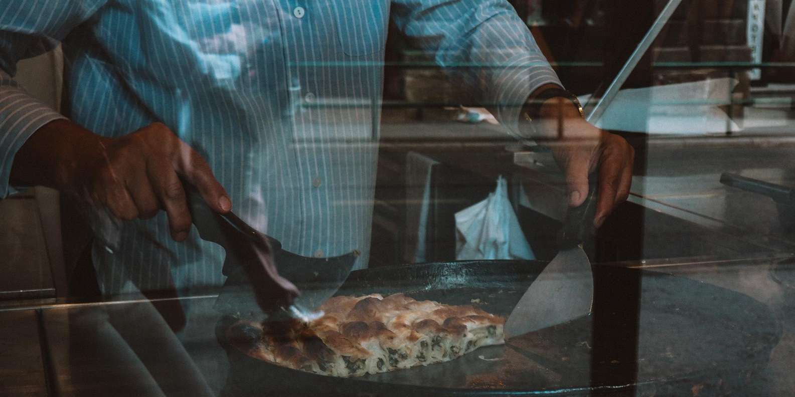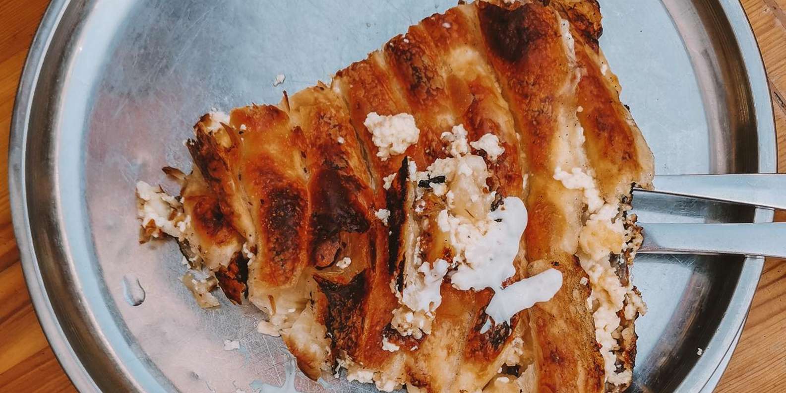 Probiere den kultigen bosnischen Burek, einen herzhaften Kuchen in einer lokalen Bäckerei