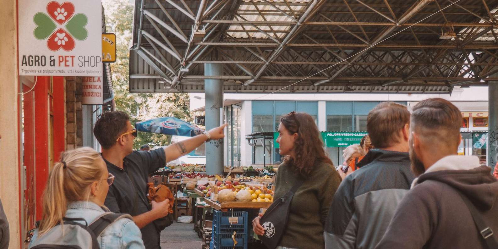 Bei einem Bummel über den lebhaften Markt und durch die Straßen von Grbavica triffst du einheimische Verkäufer, probierst frische Produkte und erlebst die authentische Atmosphäre des täglichen Lebens in Sarajevo 🍉