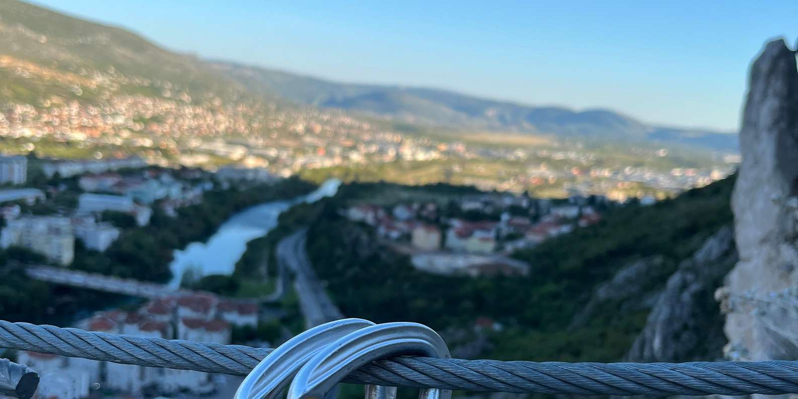 Beginne deine Reise mit einer malerischen Fahrt von Sarajevo in die Region Herzegowina, wo das mediterrane Klima auf dramatische Landschaften trifft. Nach deiner Ankunft in Mostar kannst du dich auf ein unvergessliches Abenteuer freuen: die Besteigung der Via Ferrata-Route, die über der Stadt thront.