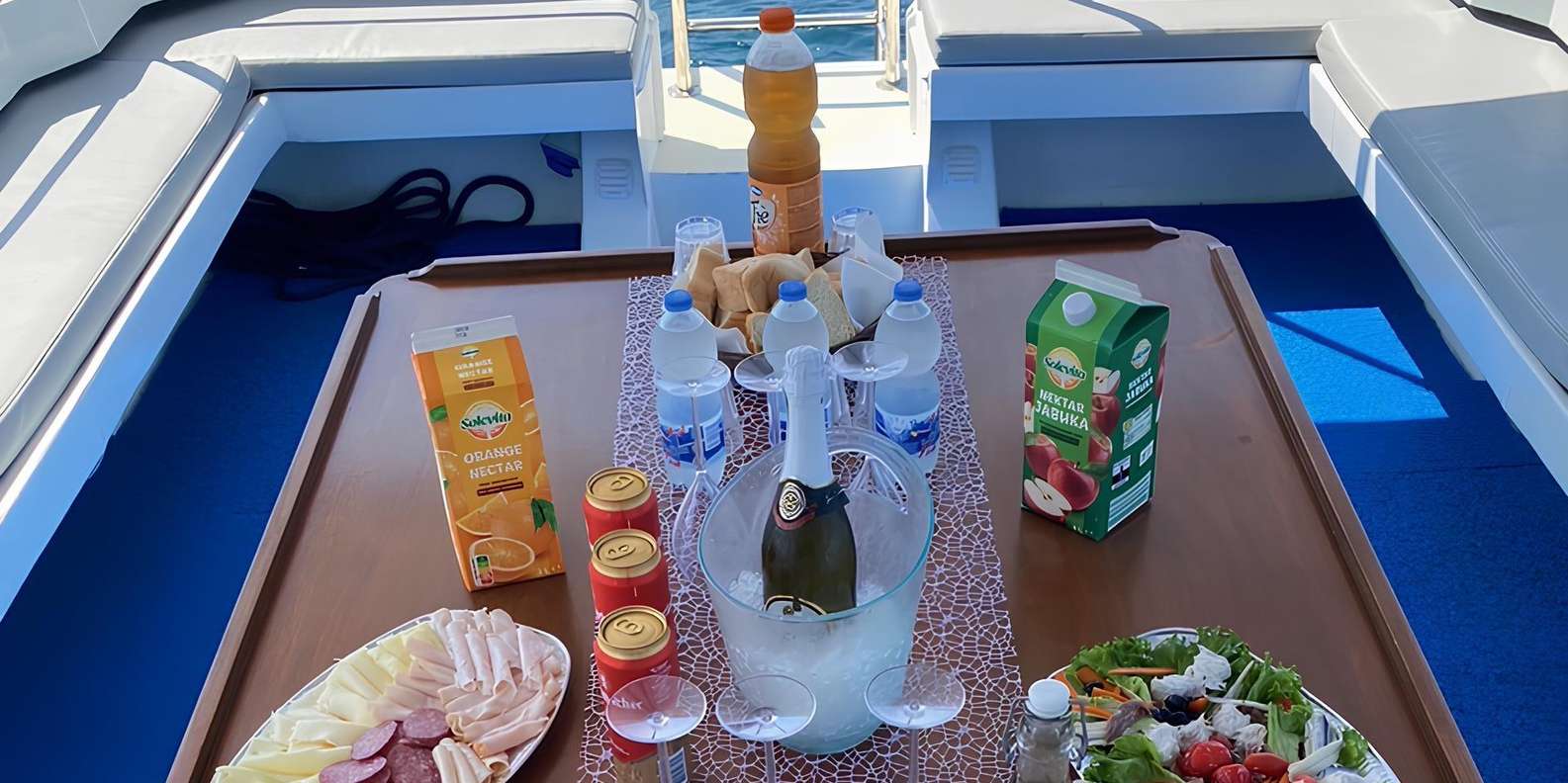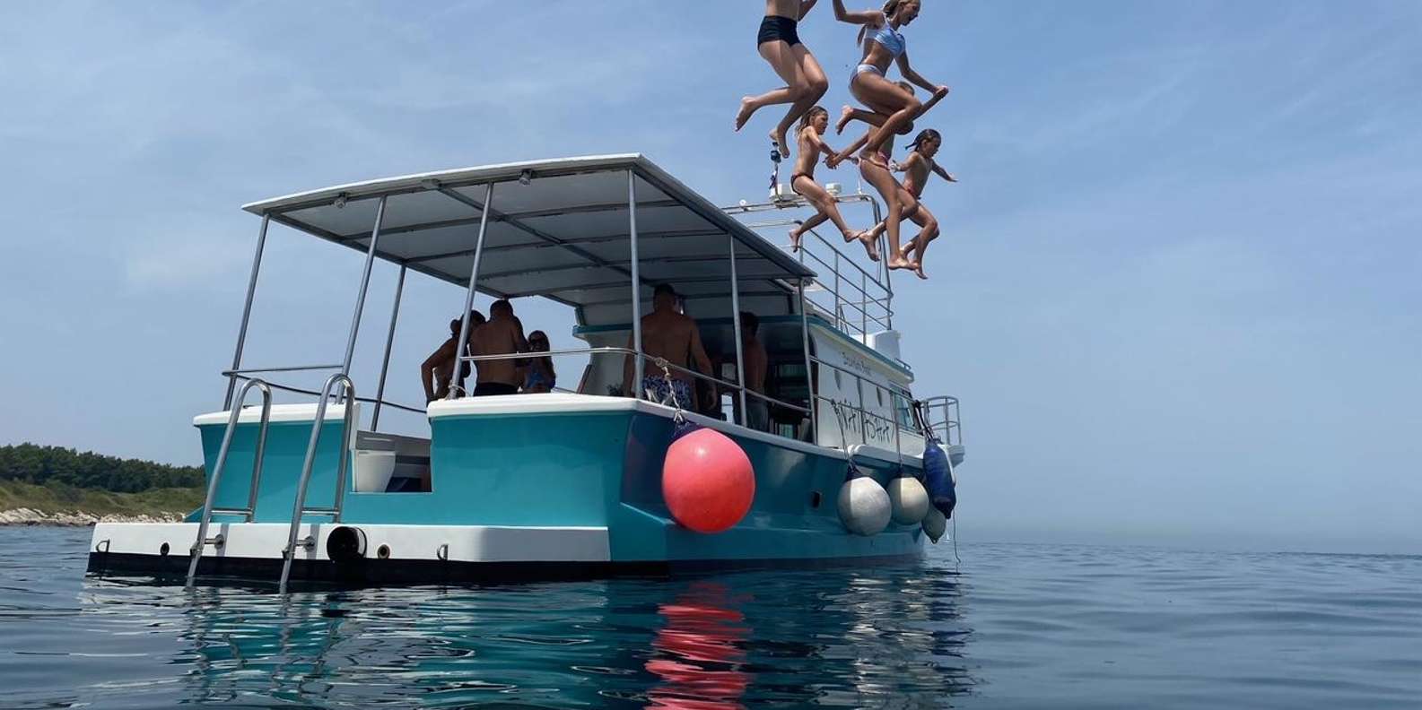 Beginne dein Abenteuer mit einem erfrischenden 15-minütigen Bad in einer abgeschiedenen Bucht. Tauche ein in das klare Wasser oder entspanne einfach an Deck und genieße die Ruhe der unberührten Schönheit Kroatiens.