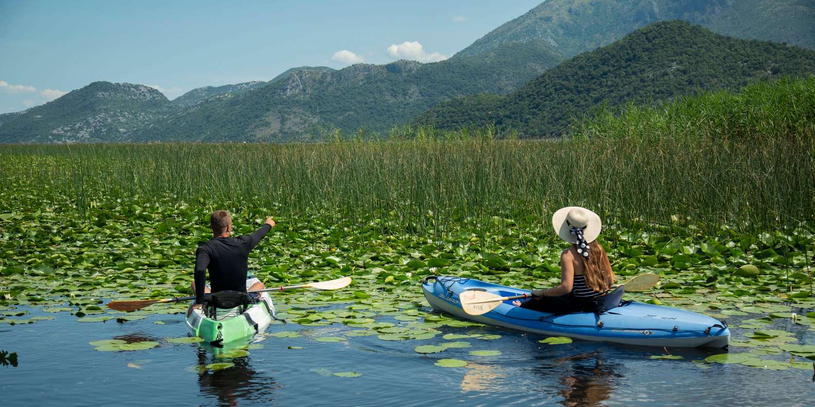 Erlebe die Gelassenheit beim Kajakfahren auf dem Skadar See. Inmitten der Stille der Lotusblumen paddelst du durch die ruhige Umarmung der Natur. Begegne 280 Vogelarten und schaffe eine einzigartige Verbindung zu einem vielfältigen Ökosystem.