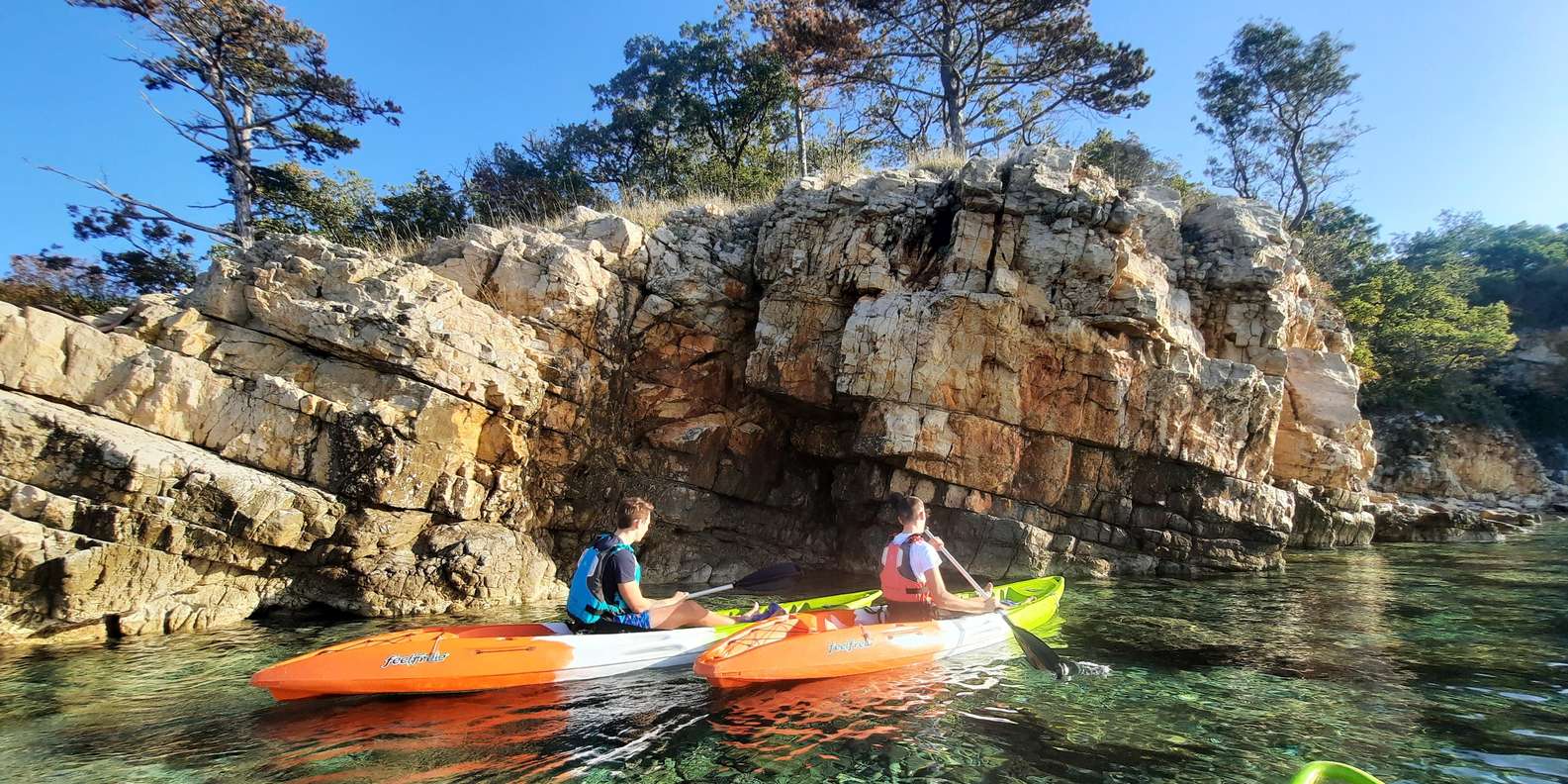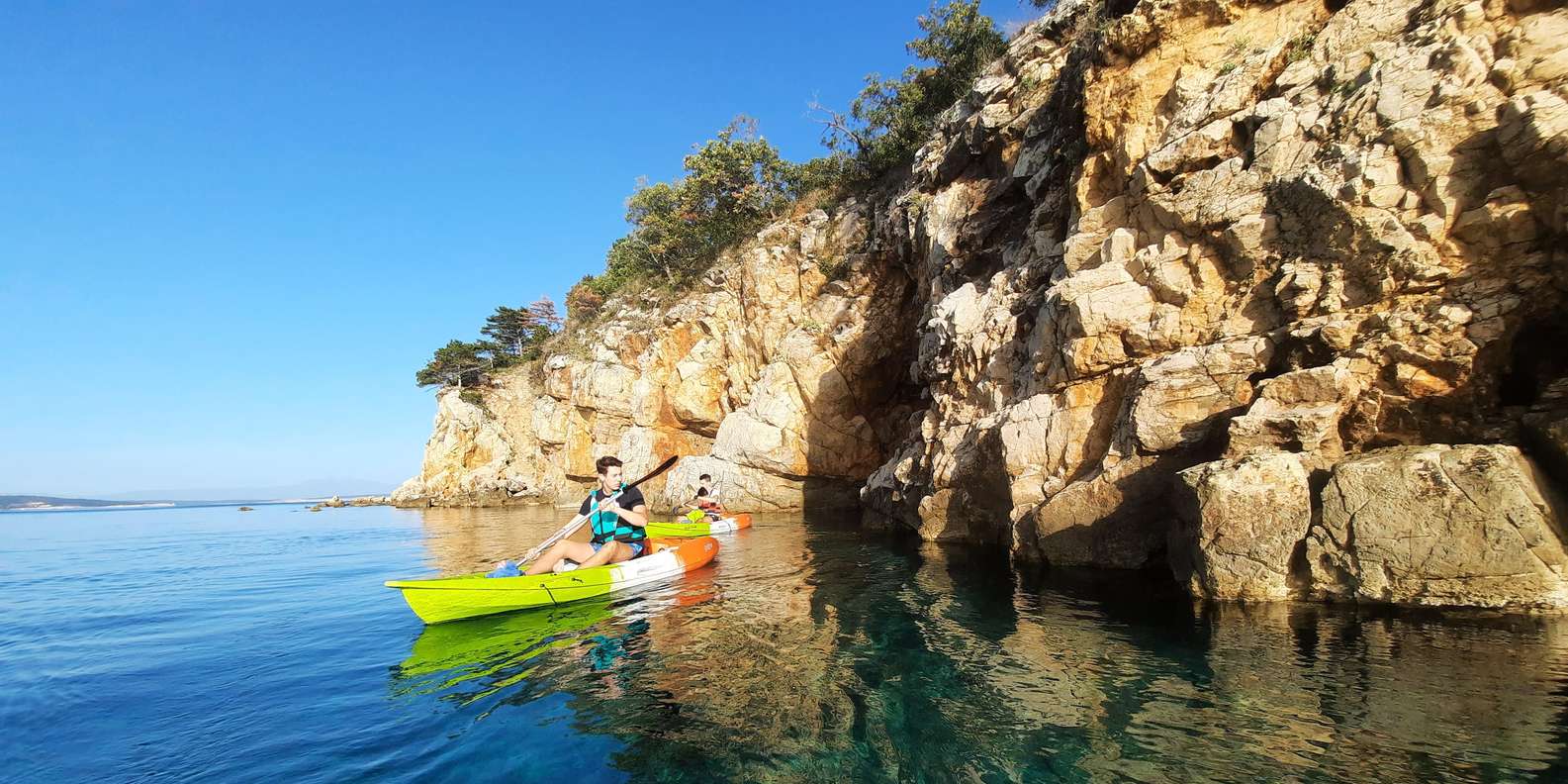 Startet euren Tag mit einer zweistündigen geführten Kajaktour von Selce's Uvala Slana aus in Richtung der malerischen Stadt Novi Vinodolski. Die Tour beginnt um 8:30 Uhr, sodass ihr das ruhige Wasser