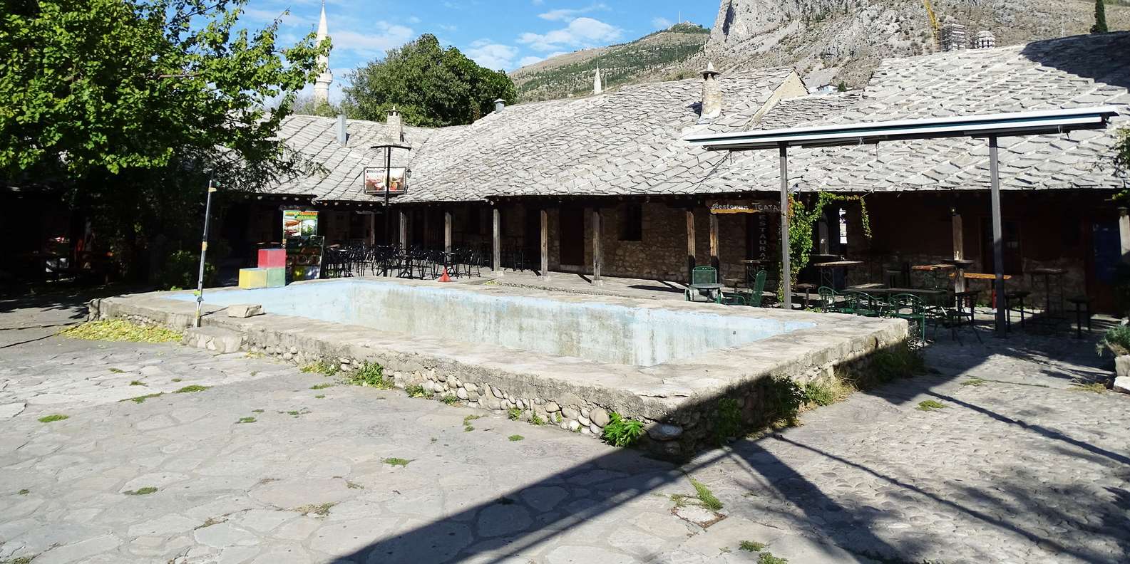 Wenn wir die Altstadt von der Westseite aus betreten, sehen wir zuerst die Krumme Brücke und die Nezir-Aga-Moschee. Danach besichtigen wir eine Gerberei und ein Hammam. Wenn wir uns der Alten Brücke nähern, sehen wir das älteste Café der Stadt und den traditionellen Taucherclub, die sich beide im Turm Halebija befinden. Wenn wir die Alte Brücke überqueren, gelangen wir in die Straße Kujundžiluk, die auch als Straße der Juweliere bekannt ist. Noch ein paar Schritte weiter und wir landen im Innenhof der Mehmed-Pascha-Koski-Moschee, wo wir unsere Tour beenden.