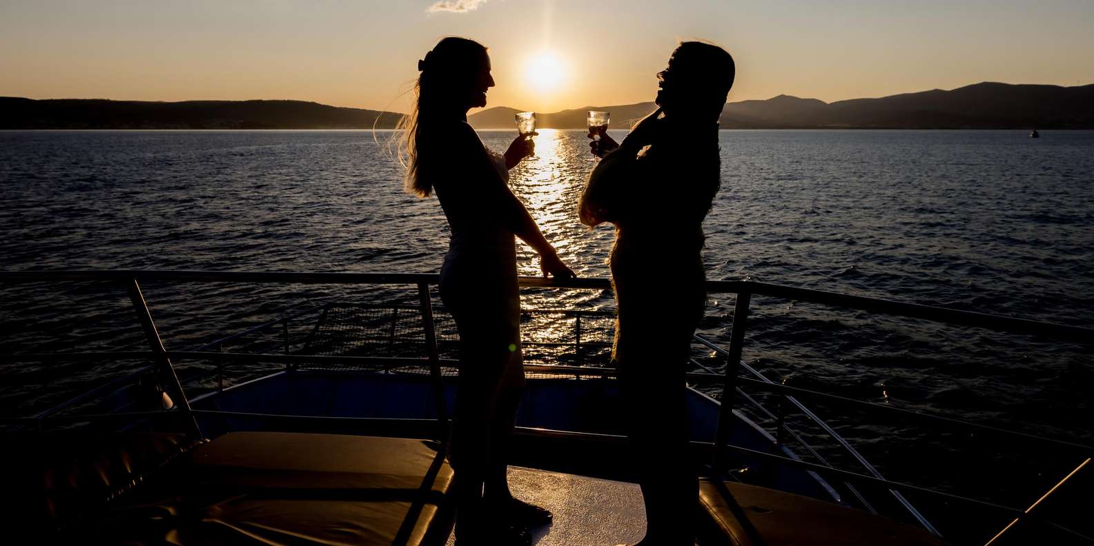 Genieß einen wunderschönen Sommerabend in Dalmatien, während du auf einem komfortablen Boot die Riviera von Split erkundest. Beginne deine Reise am Hafen von Split und folge dem Weg der Sonne um die Adria.