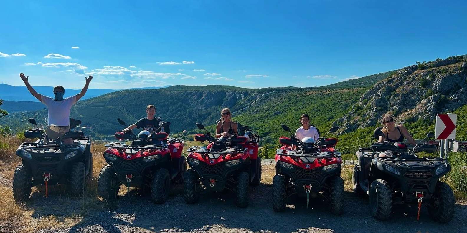 Diese Quad-ATV-Tour zeigt dir die beeindruckende Kraft der Natur und wird dir den Atem rauben. Du siehst die Quelle des Flusses Rude und die Quelle des Flusses Ovrlja. An der sauberen und natürlichen Quelle des Flusses Ruda erwartet dich ein besonderes Erlebnis: Schwimmen! Absolut einzigartig und aufregend! Wir zeigen dir die wunderschönen Wasserfälle dieser beiden Flüsse. Weiter geht's entlang des dritten und größten Flusses, dem Cetina. Drei Flüsse, zwei natürliche Quellen und eine aufregende Quad-Tour – für uns klingt das nach einem unvergesslichen Erlebnis.