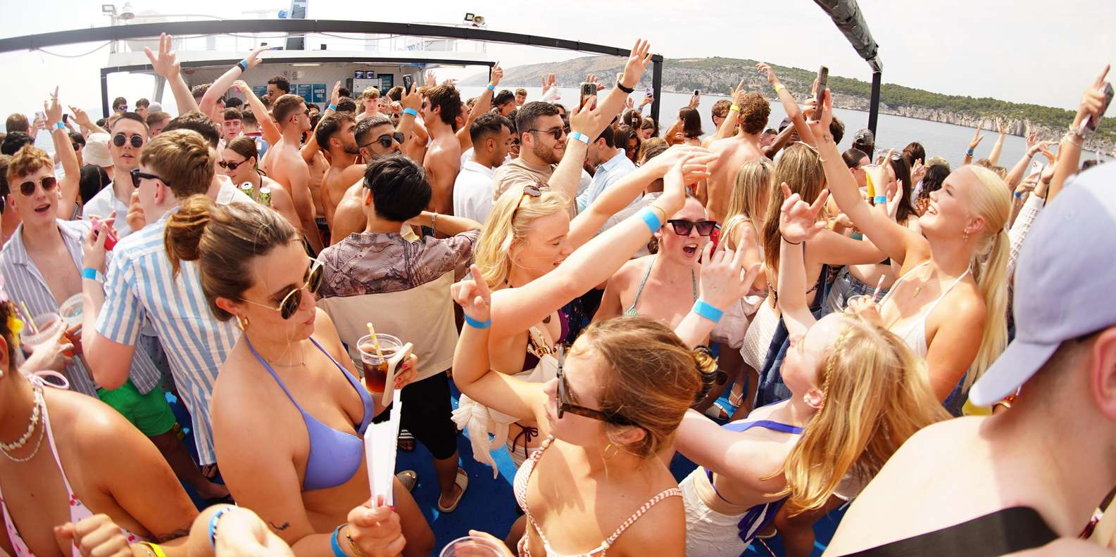 Europas Bootsparty Nummer eins von Out to Sea Split. Segle mit Live-DJs, kostenlosen Willkommensshots und einem Badestopp in der berühmten Blauen Lagune über die Adria, bevor du nach Split zurückkehrst und den bevorzugten Eintritt zur After-Party erhältst