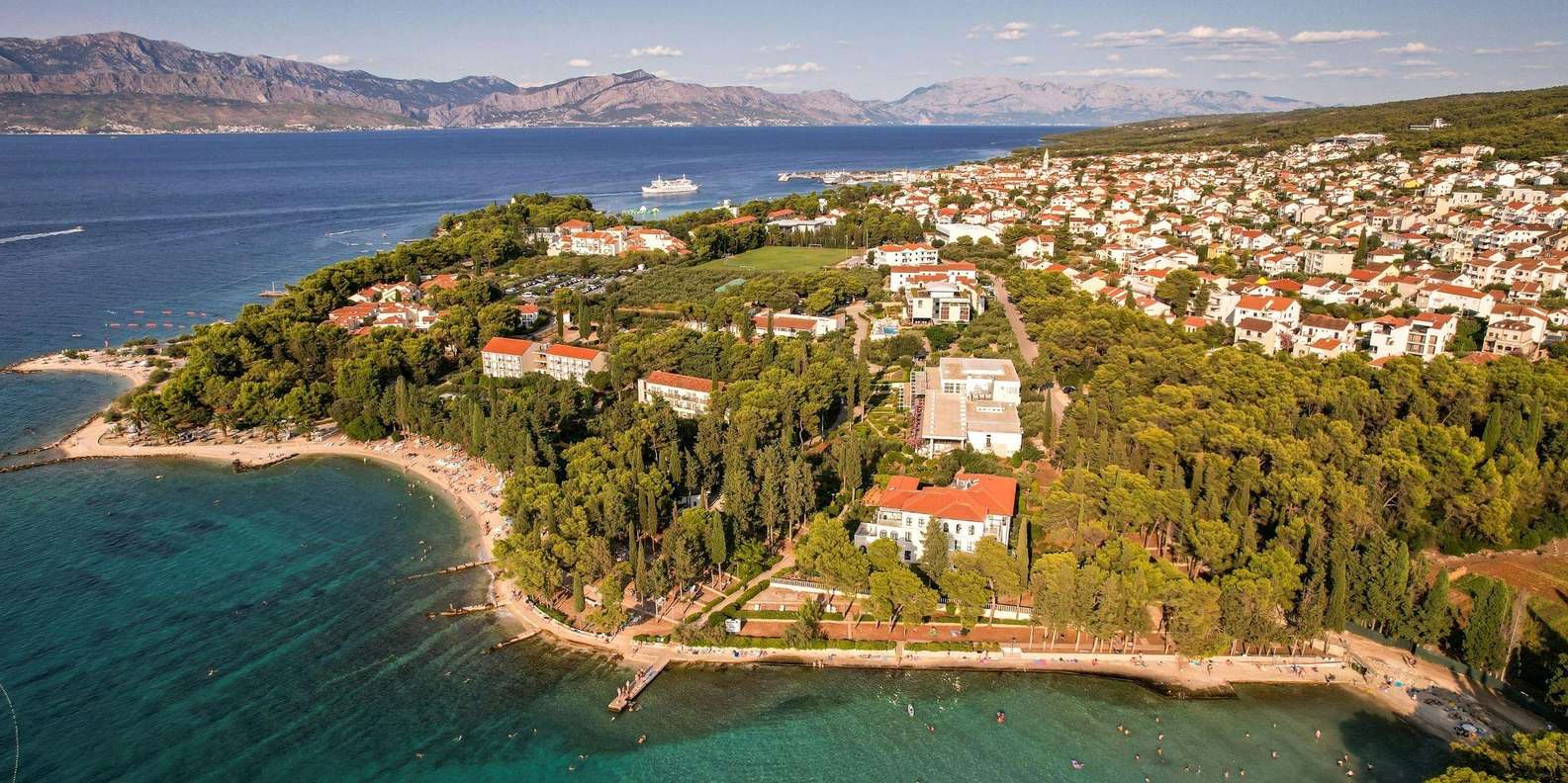 Auf der Insel Brač bietet jeder Halt ein anderes Erlebnis. In Supetar genießt du eine Mischung aus lokalem Leben und entspannter Küstenenergie. Schlendere unter Palmen, besuche die Kirche St. Peter oder schwimme in den kristallklaren Buchten in der Nähe. Supetar ist auch ein ausgezeichneter Ausgangspunkt, um die Dörfer und Olivenhaine im Inselinneren zu erkunden.