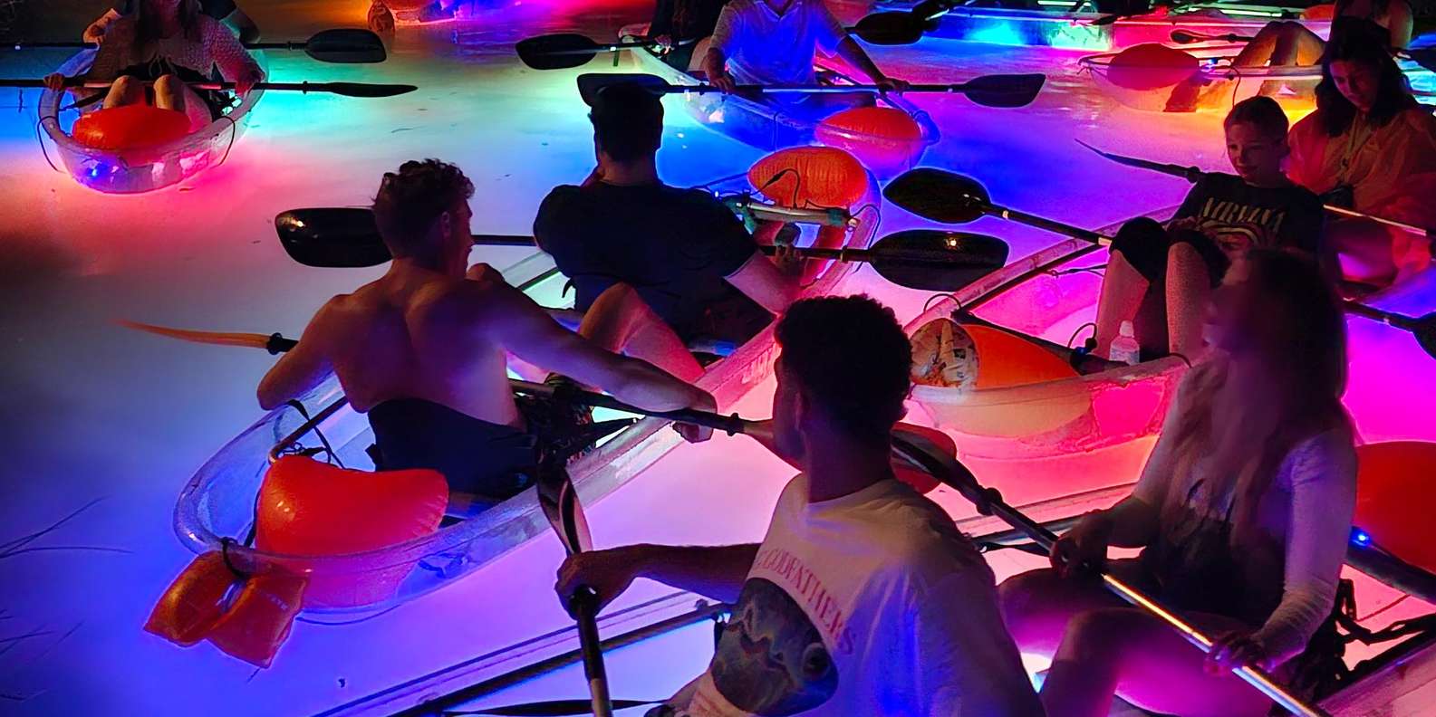 - Erlebe eine andere Art von Nachtfahrt in unseren leuchtenden, durchsichtigen Kajaks