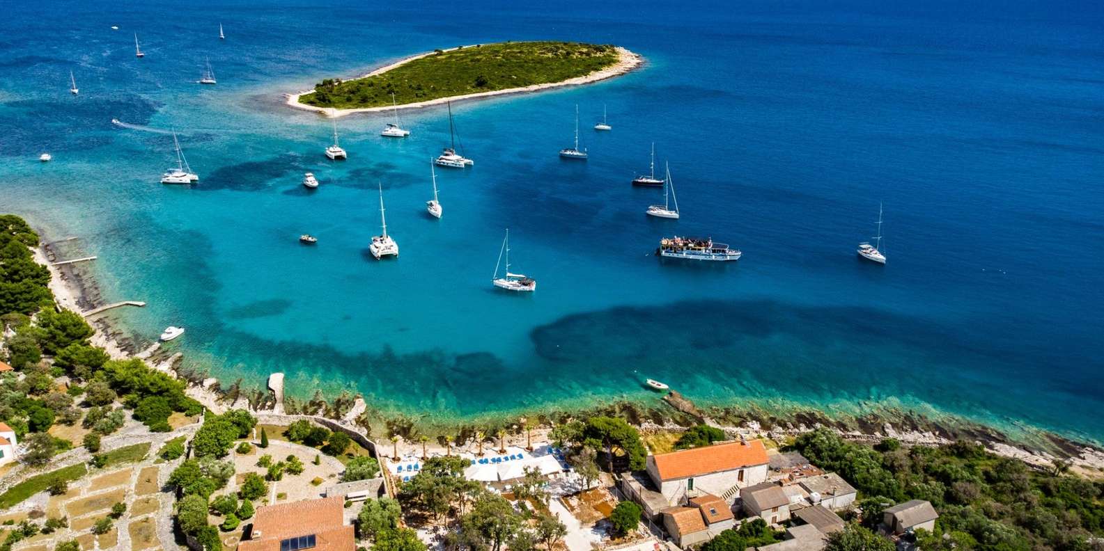 Nach einer malerischen 30-minütigen Fahrt erreichst du die atemberaubende Blaue Lagune, eine flache Bucht an der Südostseite der Insel Drvenik. Der sandige Meeresboden, gemischt mit zerkleinerten Muscheln, verleiht dem Wasser einen unvergesslichen türkisfarbenen Schimmer. Tauche ein in kristallklares Wasser, schnorchle inmitten einer lebendigen Unterwasserwelt oder genieße die warme Sonne.