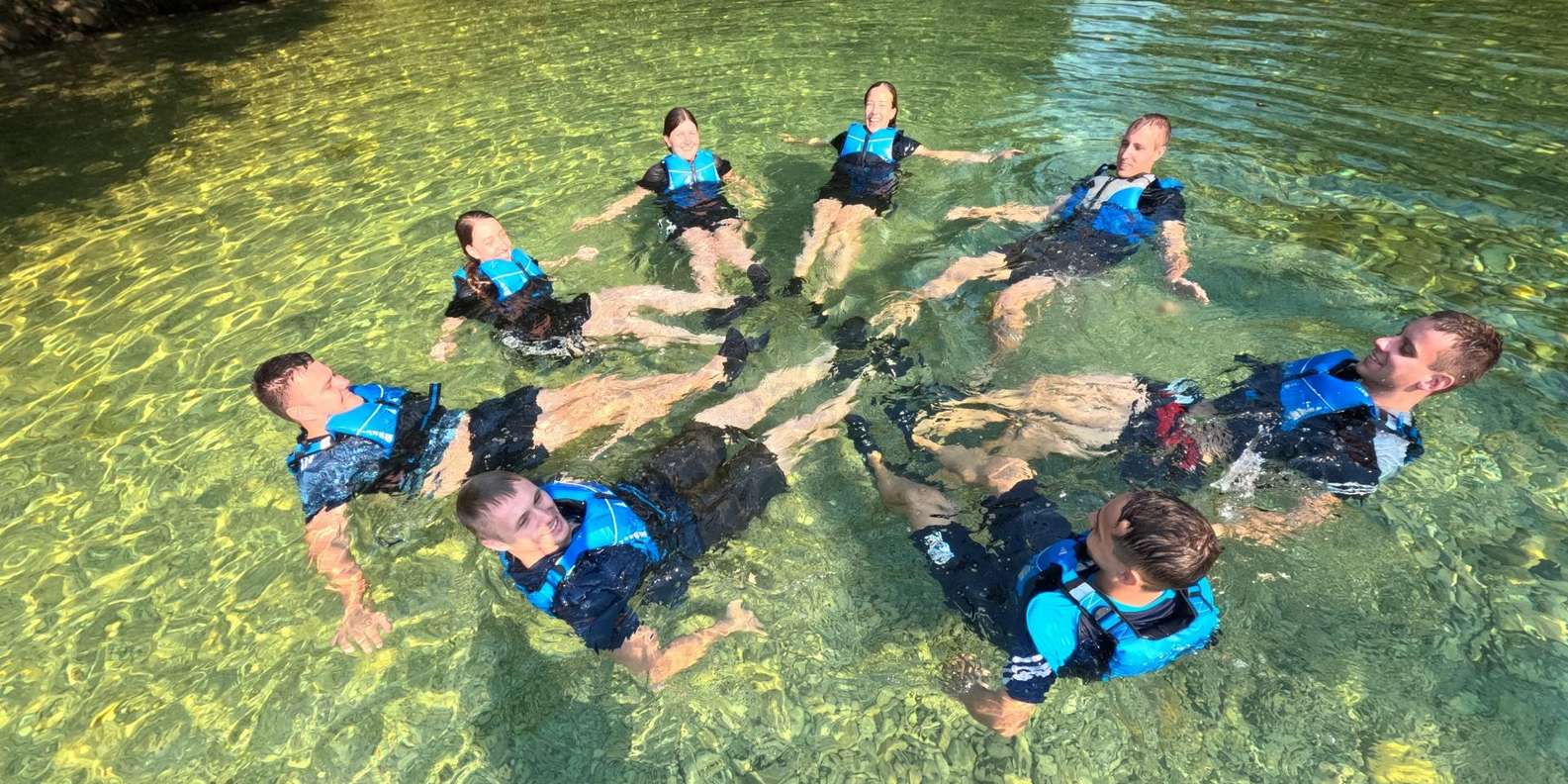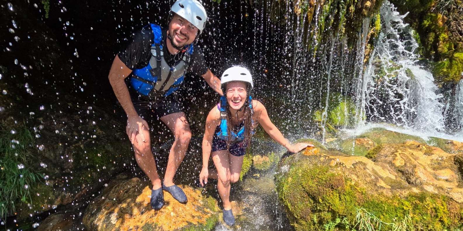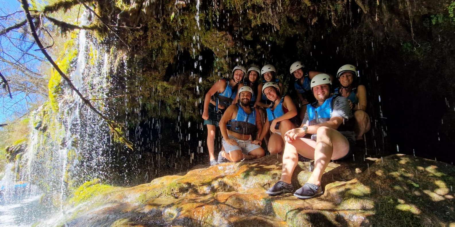 Die Teilnehmer können von hohen Klippen aus 4 bis 6 Metern Höhe springen. Auf dem Höhepunkt des Abenteuers geht es in die Höhle hinter dem Wasserfall, die nach Meinung vieler der schönste Teil der Reise ist. Nachdem du den ersten, vom Tageslicht beleuchteten Raum betreten hast, schwimmst du im nur 10 Grad warmen Wasser, von wo aus du den zweiten Teil voller Stalaktiten und Stalagmiten betrittst. Kleine Seen mit Trinkwasserquellen sind in der ganzen Höhle verteilt. Ganz am Ausgang gibt es einen Wasserfall, der den Ausgang bedeckt - ein idealer Ort, um ein Foto zu machen.
