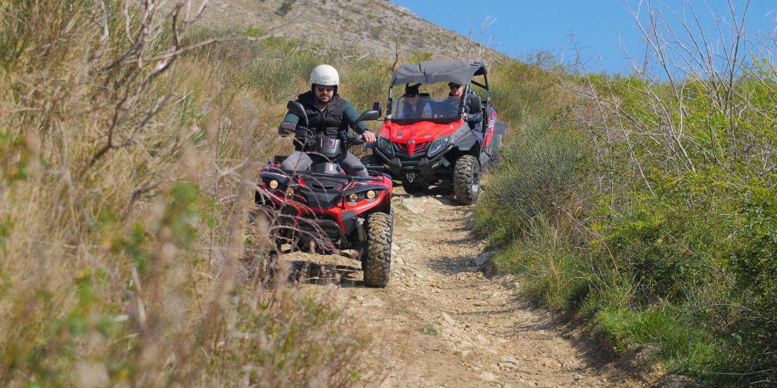 Begib dich auf ein aufregendes Quad-Abenteuer durch Podstrana, wo das zerklüftete Berggelände einen atemberaubenden Blick auf die dalmatinischen Inseln bietet.