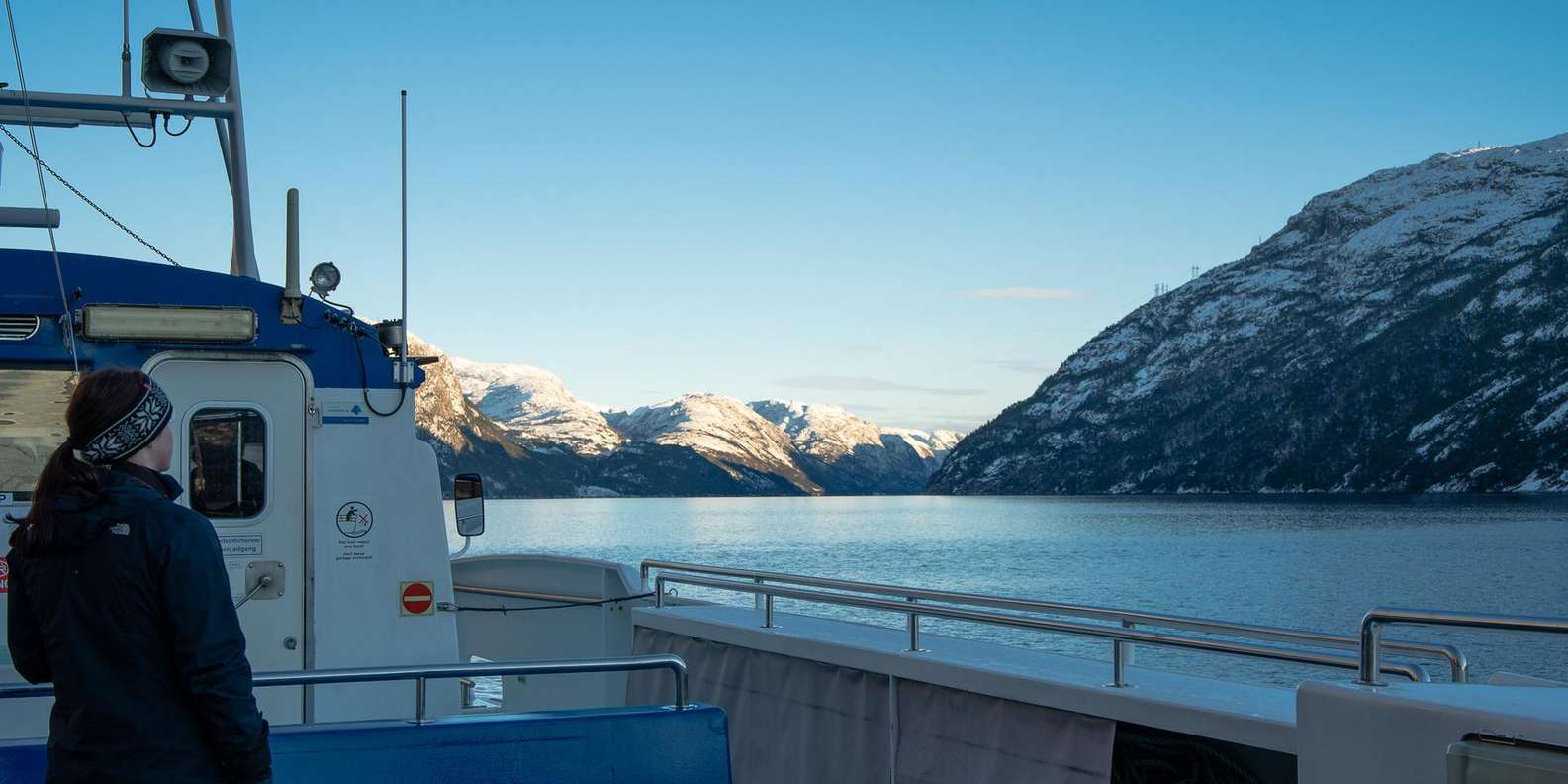 Schau, wo sich die „Vagabunden“ früher vor dem Sheriff versteckt haben, wenn das umweltfreundliche Boot an der Fantahålå (Vagabundenhöhle) vorbeifährt. Dann schau dir die berühmte und majestätische Felsformation Preikestolen an, die 604 Meter über dem Meeresspiegel thront. Der nächste Halt ist der Wasserfall Hengjanefossen, wo die Crew den Bug so nah an die Wasserfälle bringt, dass du die erfrischende Gischt spüren kannst!