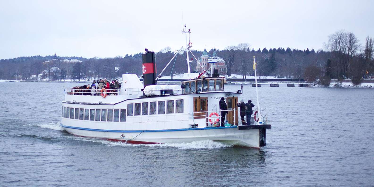 Begleite uns auf eine bezaubernde Sightseeing-Kreuzfahrt mit der M/S Angantyr durch das winterliche Stockholm. Die Tour führt dich entlang der Kais der Stadt und hinaus zu Fjäderholmarna, den nächstge