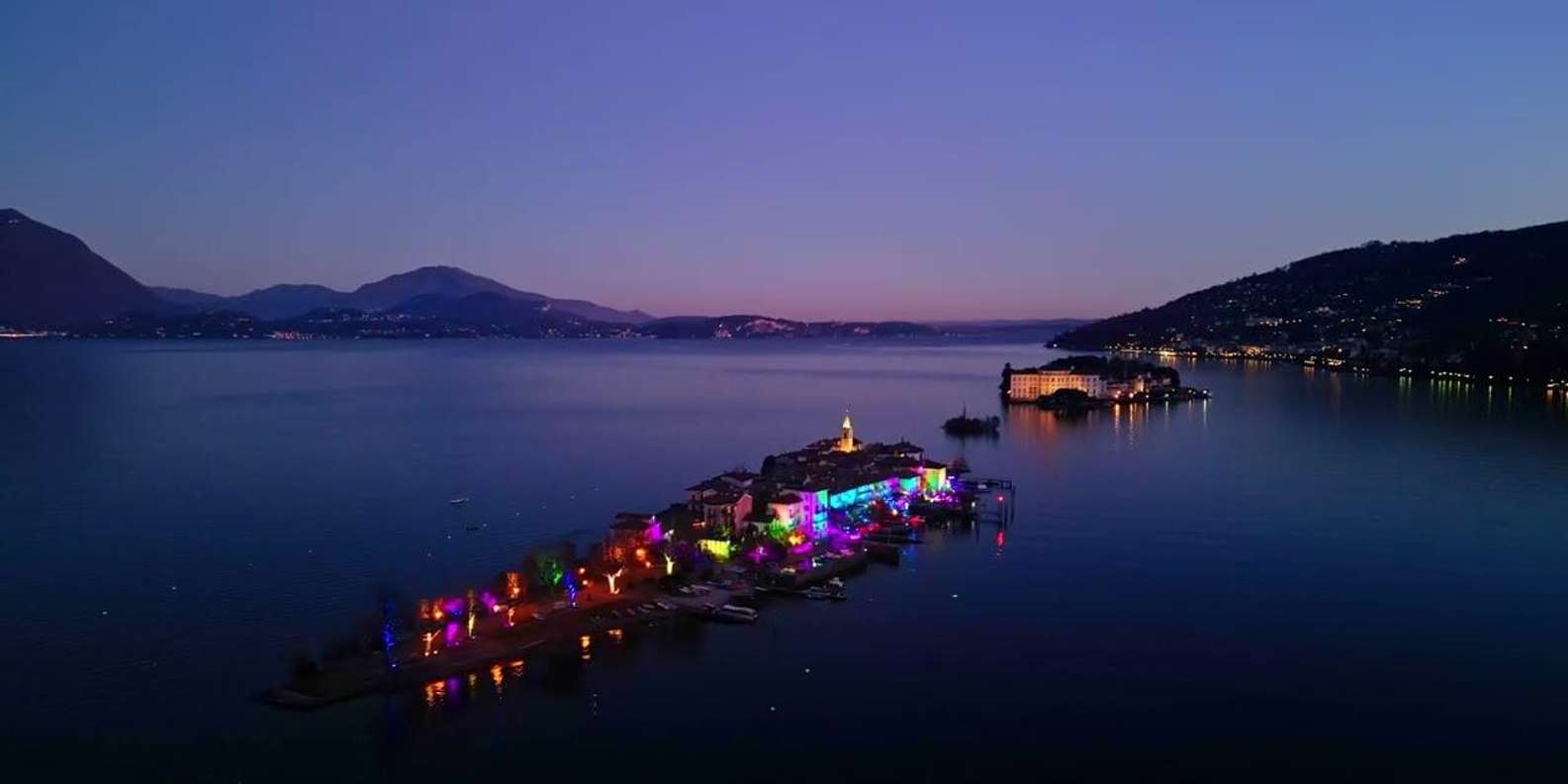 Während der gesamten Festtage präsentiert sich die Isola dei Pescatori der Öffentlichkeit mit „Isole di Luce - The Circle of Lights“, einem Projekt, das Symphonien aus Licht und Design vereint und die