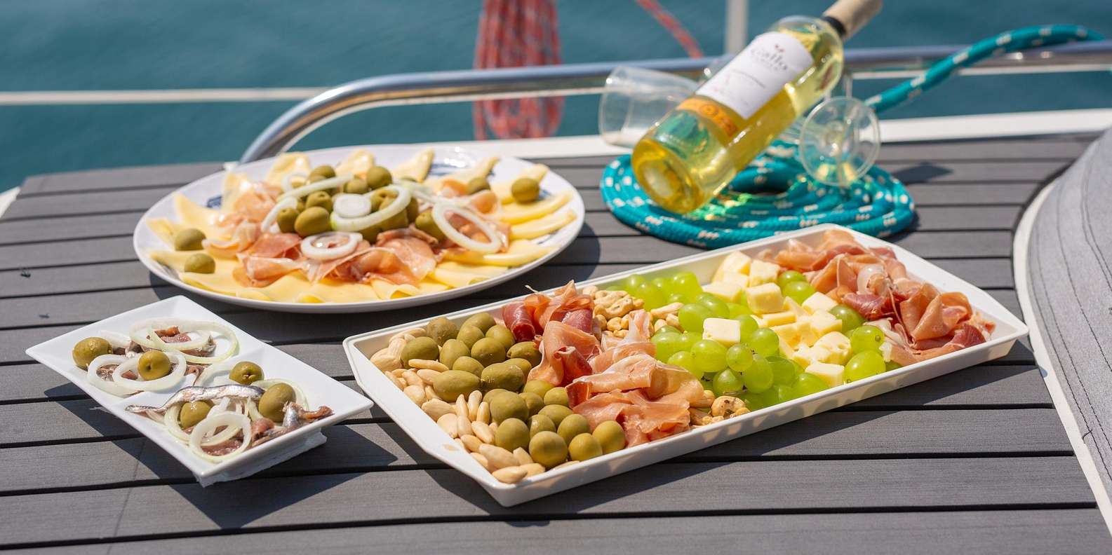 Brunch & Drinks – Frische lokale Aromen (dalmatinischer Pršut, Pager Käse und spritziger kroatischer Wein) während der Fahrt.