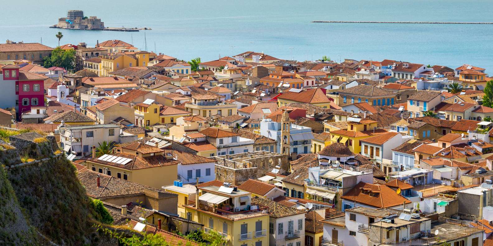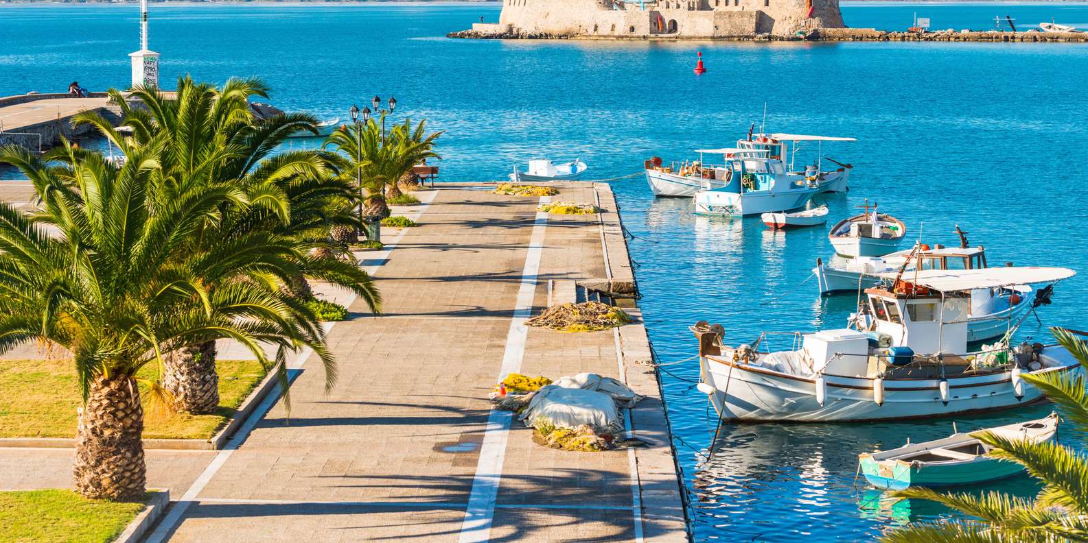 Zu guter Letzt solltest du einen Stopp in der malerischen Stadt Nafplion einlegen, die die erste Hauptstadt Griechenlands nach der Unabhängigkeit war und seit der Bronzezeit ein wichtiger Hafen ist. Ihre Lage war so strategisch, dass die Stadt drei Festungen besitzt: die massive Festung Palamidi, die kleinere Akronafplia und die Wasserburg Bourtzi auf einer kleinen Insel westlich der Altstadt. Schlendere durch die schönen engen Gassen und bewundere die eleganten venezianischen Häuser, neoklassizistischen Villen und Cafés am Kai.