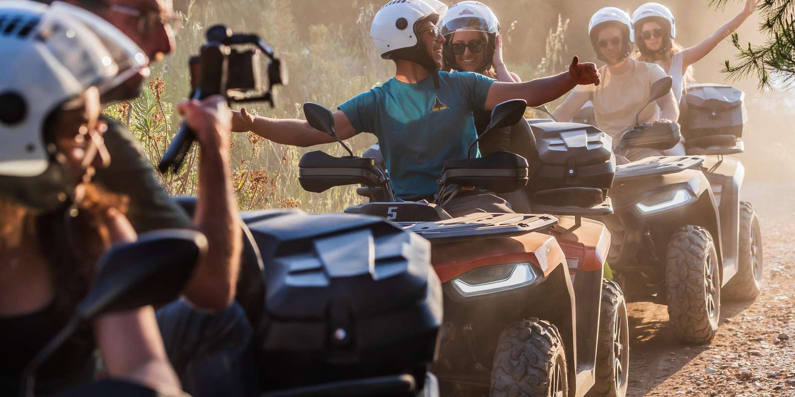Deine Sicherheit ist unsere oberste Priorität. Alle unsere Quads (Segway 500cc) sind brandneu, zugelassen und sowohl für Fahrer als auch Beifahrer versichert. Sie sind vollautomatisch und anfängerfreundlich. Jeder Gast erhält einen Schutzhelm und eine umfassende Sicherheitseinweisung von unseren Guides. Unsere Quads sind mit Aluminiumfelgen und Staukästen ausgestattet, damit du deine persönlichen Gegenstände sicher verstauen kannst. Jeder Teilnehmer erhält außerdem eine 0,5-Liter-Flasche Wasser für die Fahrt.