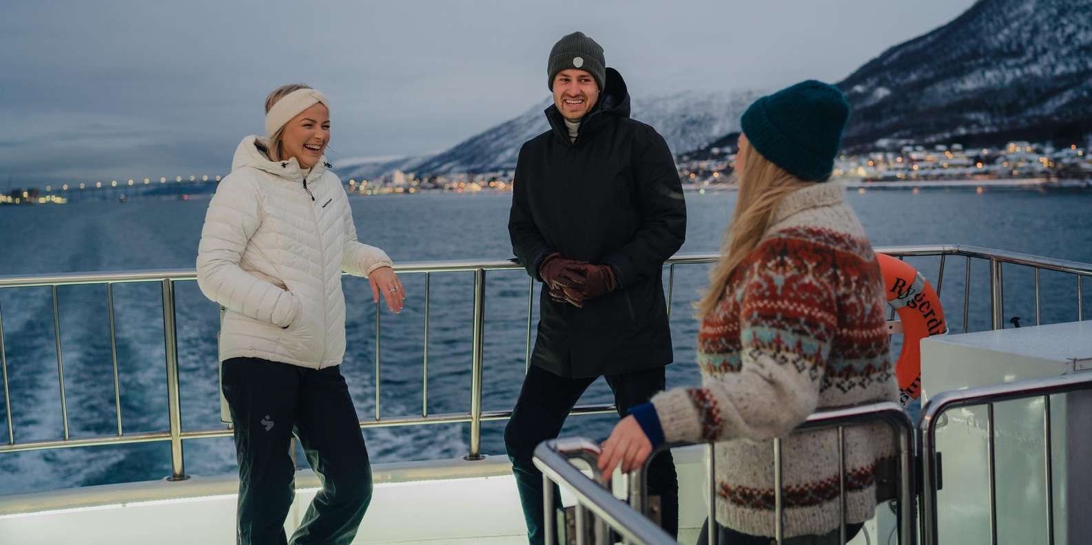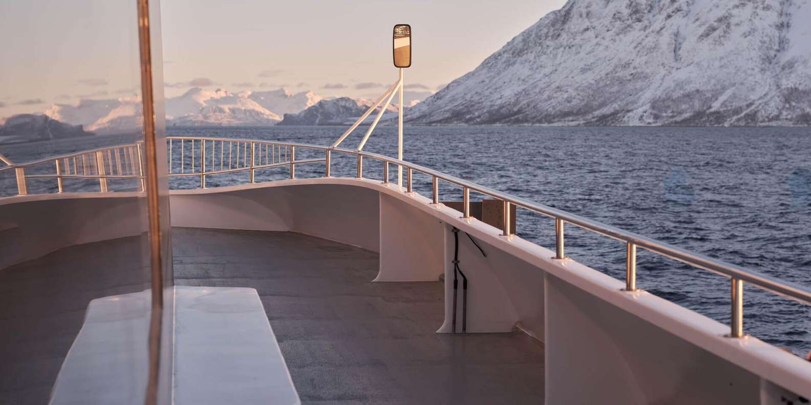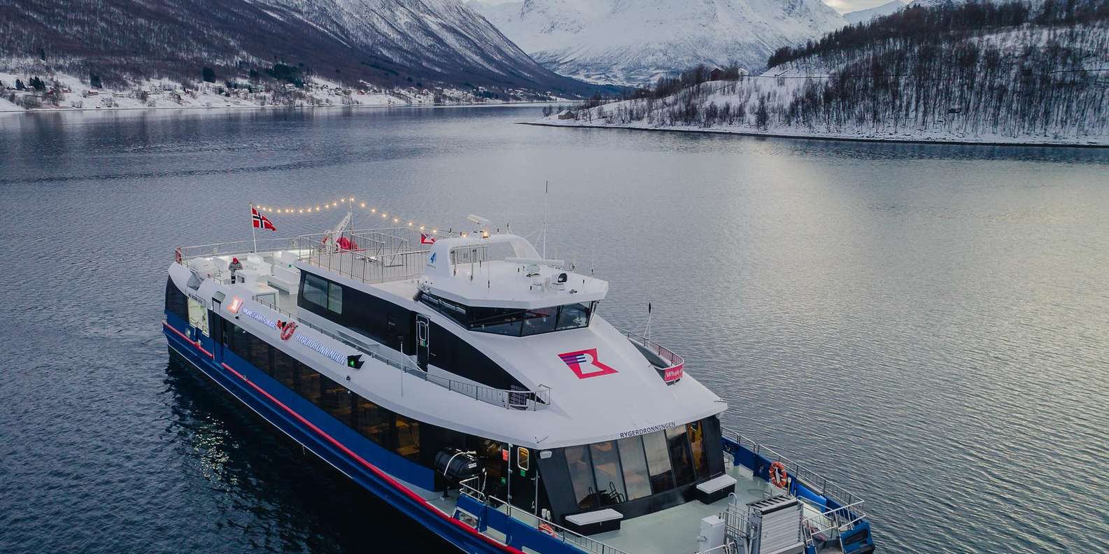 Fühle dich wie ein arktischer Entdecker an Bord eines geräumigen und luxuriösen Katamarans, der perfekt ist, um die kalte und majestätische arktische Landschaft zu erleben und dabei warm und bequem zu bleiben! An den kältesten Tagen kann es sogar sein, dass der Fjord vereist ist, was einen ganz besonderen Nervenkitzel bedeutet. Der Kapitän wählt dann eine alternative Route, die dir die gleichen magischen Fjord-Erlebnisse beschert. Bewege dich zwischen der warmen Lounge mit Panoramafenstern und den Aussichtsplattformen im Freien, um die frische arktische Luft, die Landschaft und die Farben am besten zu genießen. Lerne von den ortskundigen Guides, wie du die besten Landschaftsfotos machst, und halte am Kiosk an, um leckere Leckereien aus der Region zu kaufen, während du die wunderbare Landschaft genießt.