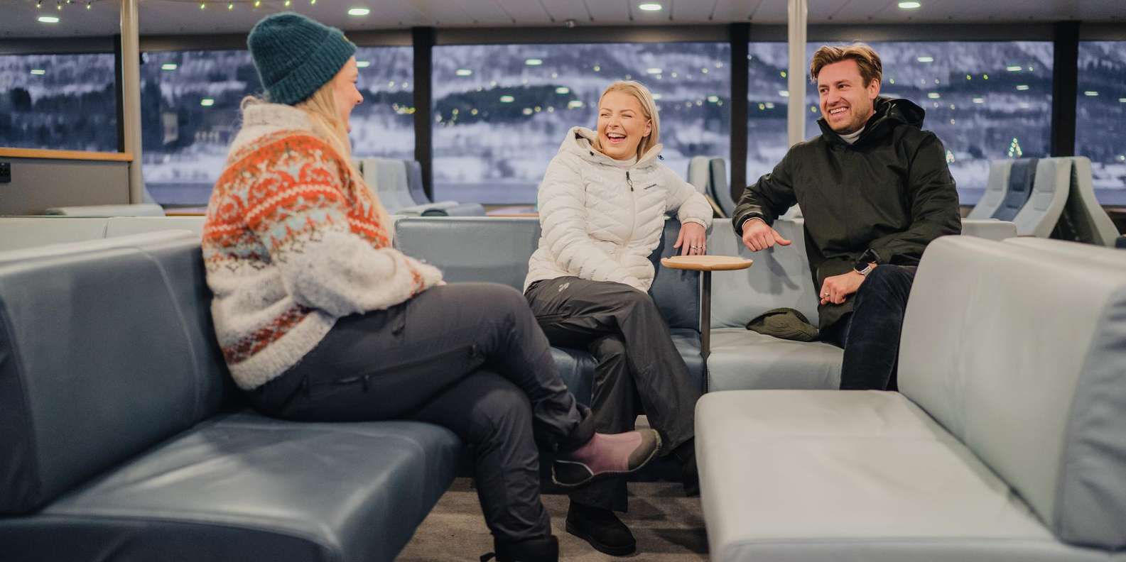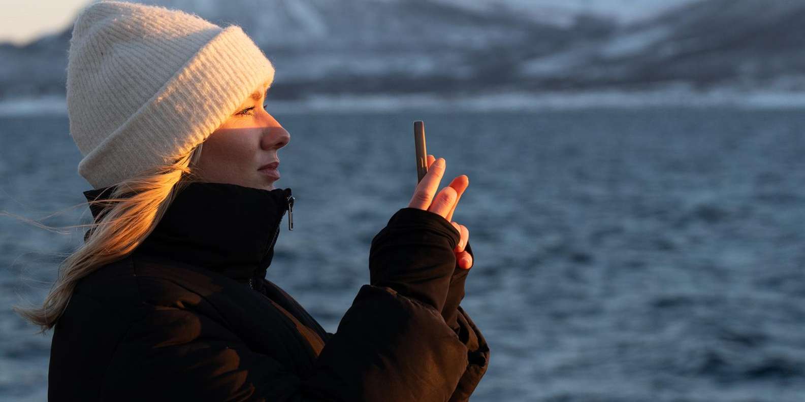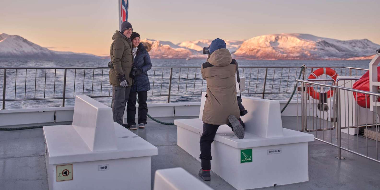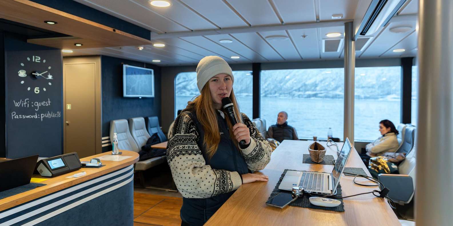 Fühle dich wie ein arktischer Entdecker an Bord eines geräumigen und luxuriösen Katamarans, der perfekt ist, um die kalte und majestätische arktische Landschaft zu erleben und dabei warm und bequem zu bleiben! An den kältesten Tagen kann es sogar sein, dass der Fjord vereist ist, was einen ganz besonderen Nervenkitzel bedeutet. Der Kapitän wählt dann eine alternative Route, die dir die gleichen magischen Fjord-Erlebnisse beschert. Bewege dich zwischen der warmen Lounge mit Panoramafenstern und den Aussichtsplattformen im Freien, um die frische arktische Luft, die Landschaft und die Farben am besten zu genießen. Lerne von den ortskundigen Guides, wie du die besten Landschaftsfotos machst, und halte am Kiosk an, um leckere Leckereien aus der Region zu kaufen, während du die wunderbare Landschaft genießt.