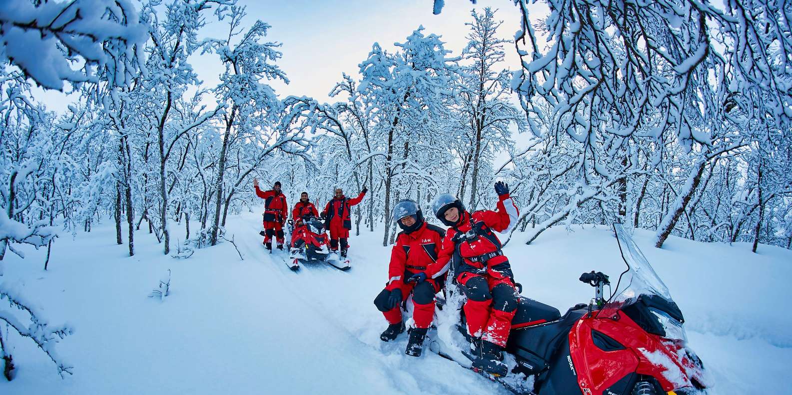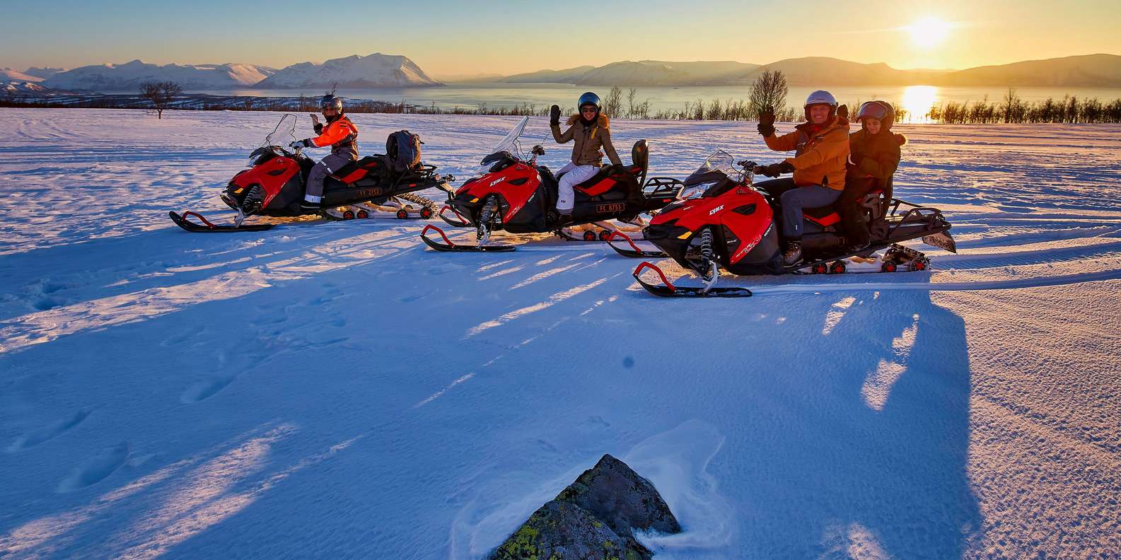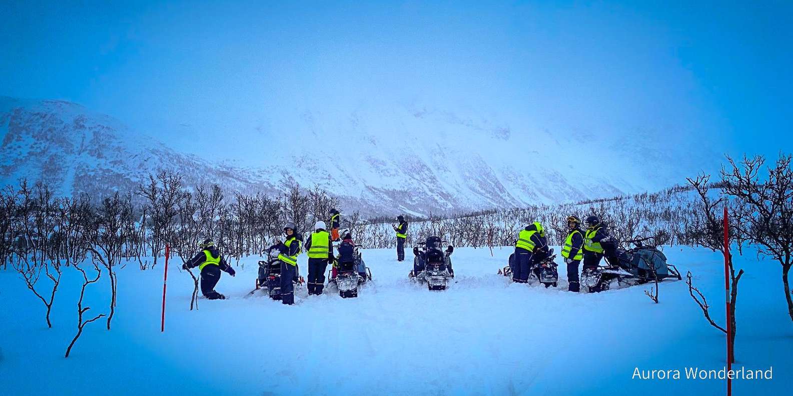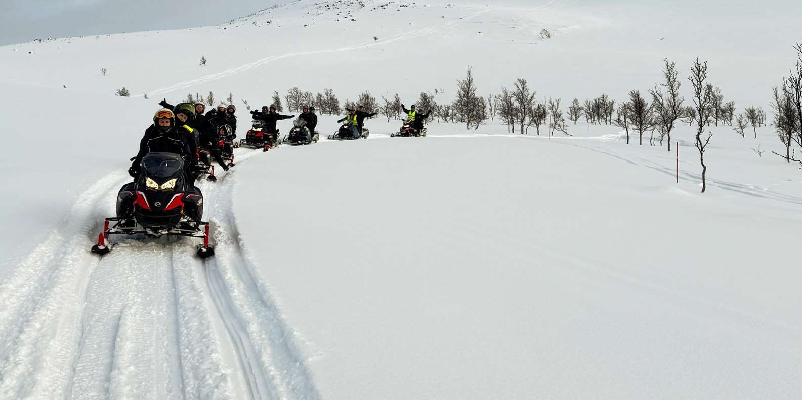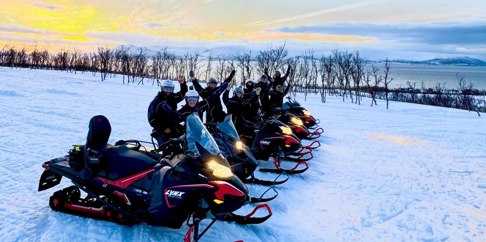 Wir fahren in einer Reihe, im Safari-Stil, auf genehmigten und gut ausgebauten Wegen. Sicherheit hat für uns oberste Priorität, und wir bleiben immer auf den ausgewiesenen Wegen. Das Gelände ist abwechslungsreich, liegt in einer Bergregion und bietet unterwegs lustige und aufregende Fahrherausforderungen. Die Tour konzentriert sich auf Sehenswürdigkeiten, Fotostopps, den Nervenkitzel des Schneemobilfahrens und die einzigartige Umgebung von Bergen, Wäldern und Fjorden.