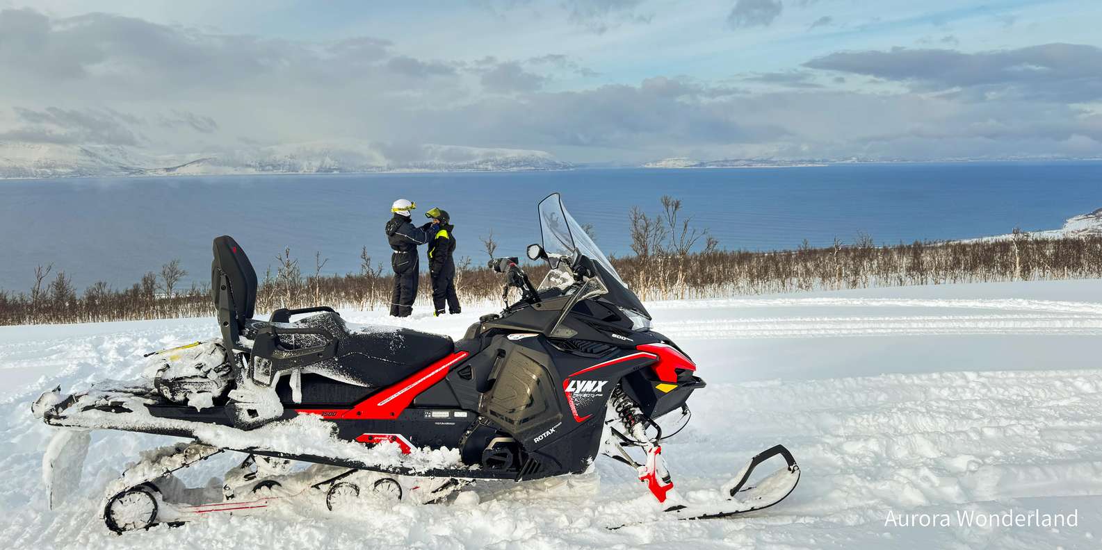 Bei deiner Ankunft im Aurora Wonderland Basecamp erhältst du deine Schneemobil-Ausrüstung – Anzug, Stiefel und Helm. Unser erfahrener englischsprachiger Guide zeigt dir, wie du das Schneemobil bedienst, gefolgt von einer kurzen Übung vor Beginn der Tour.