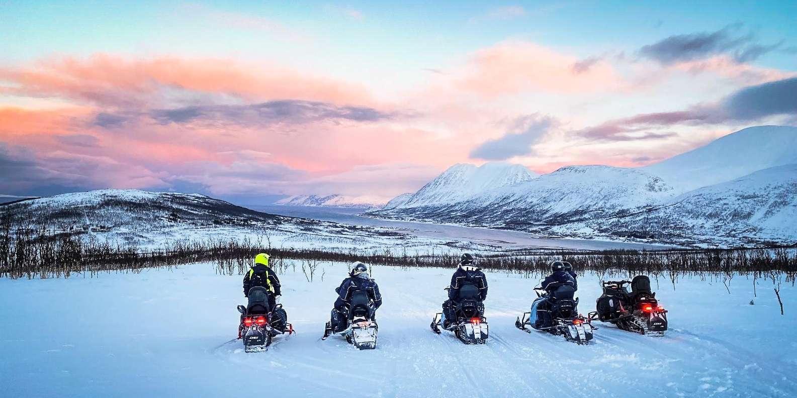 - Bewundere die wunderschönen Fjorde und die majestätischen Lyngenalpen von deinem Schneemobil aus