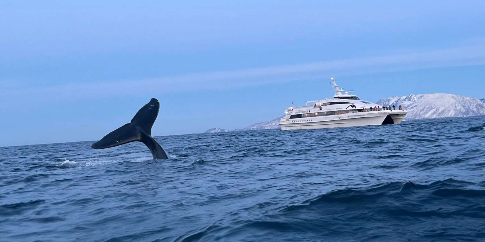 Erlebe den Nervenkitzel der Walbeobachtung in Tromsø! Komm an Bord eines der besten Katamarane Norwegens, der MS Gabriele, und begib dich auf eine schnelle, komfortable Reise, um majestätische Wale aus nächster Nähe zu sehen. 6-8-stündige Tour.