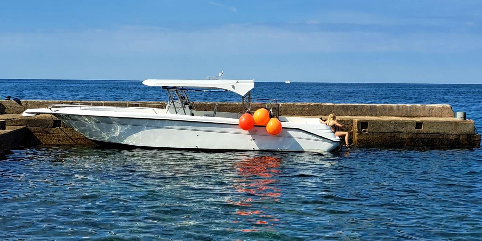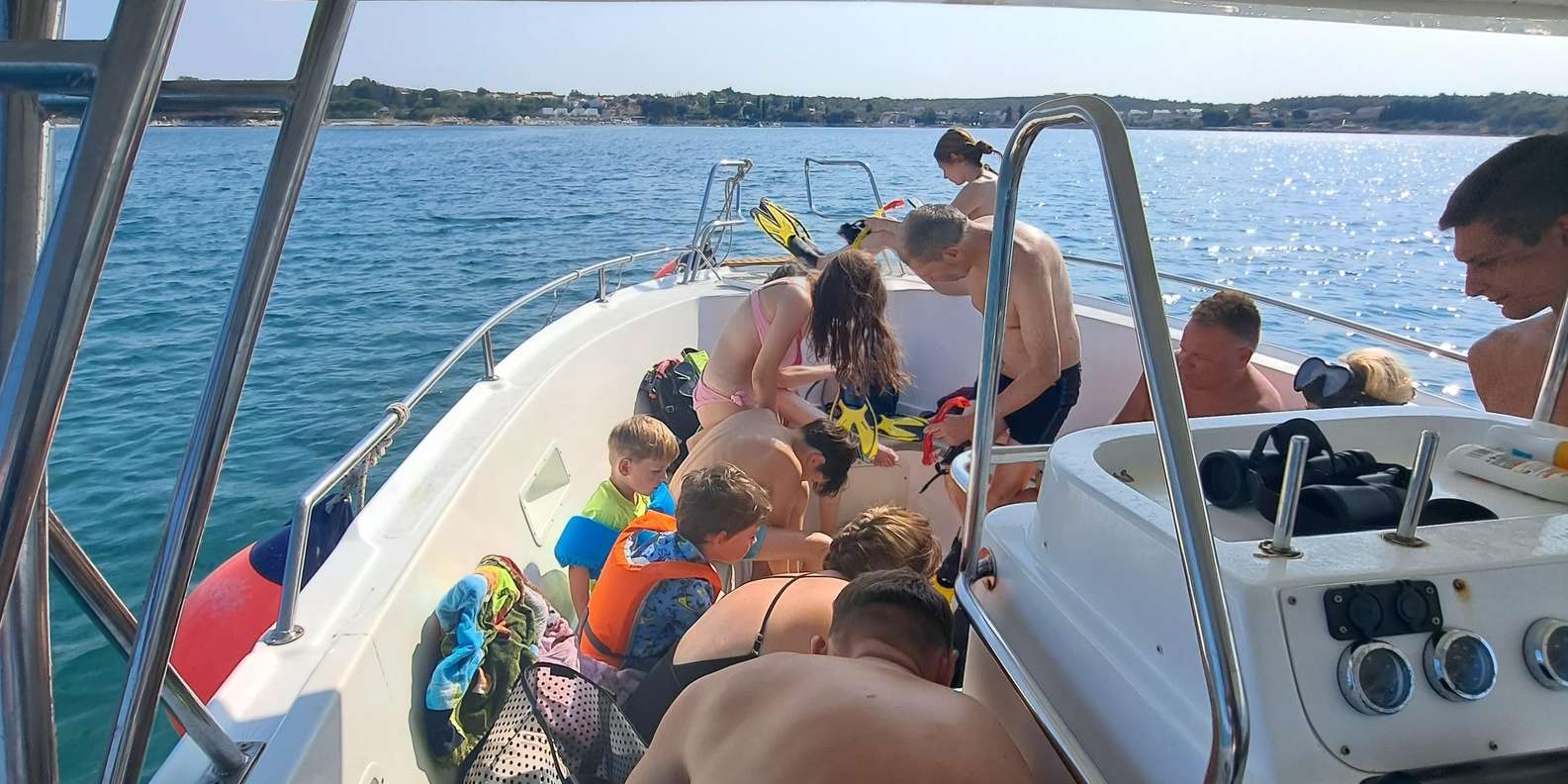 Wenn der Anker gelichtet ist und alle Gäste nach dem angenehmen Bad wieder an Bord sind, fahren wir zurück nach Umag. Auf dem Rückweg kannst du dich auf den Sonnenmatten im hinteren Teil des Bootes sonnen, die speziell dafür entwickelt wurden, dir als perfekten Abschluss dieses einzigartigen Ausflugs Komfort zu bieten.