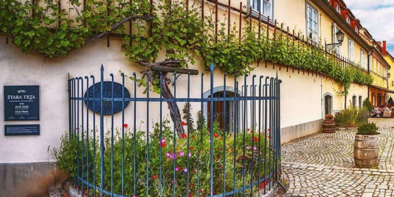 Dann geht's weiter mit einem Spaziergang durch die Altstadt von Maribor, wo wir auch das berühmte Haus der ältesten Rebe besuchen – hier wächst die älteste Weinrebe der Welt.