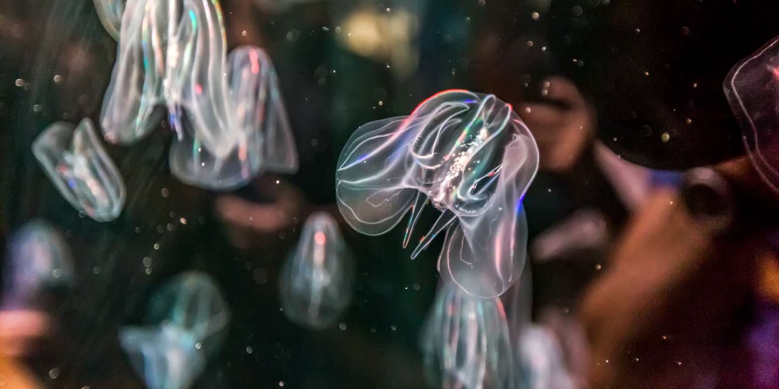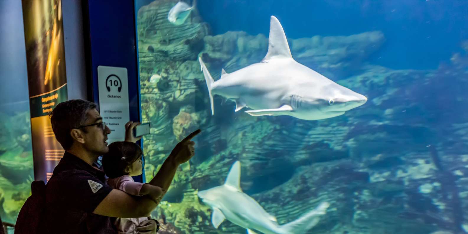 Entdecke das Mittelmeer, die Antarktis, die Arktis, das Rote Meer und vieles mehr. Erfahre Wissenswertes über mehr als 45.000 Wasserlebewesen aus 500 verschiedenen Arten, darunter Belugas, Walrosse, Quallen, Seelöwen und Haie. Wenn du dir eine Pause gönnen möchtest, begib dich einfach ins Unterwasserrestaurant.