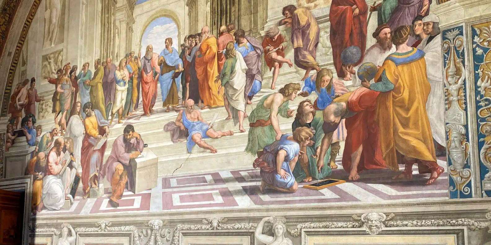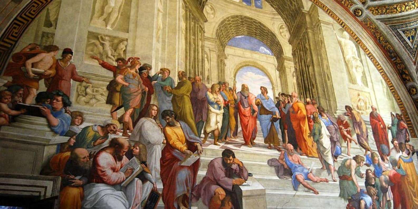 - Sieh dir berühmte Werke wie die Schule von Athen in den Stanzen des Raffael an