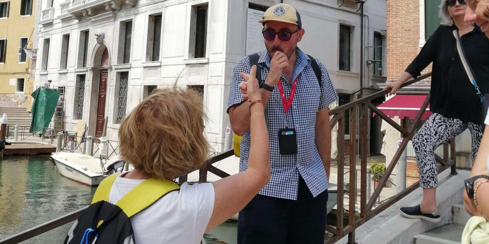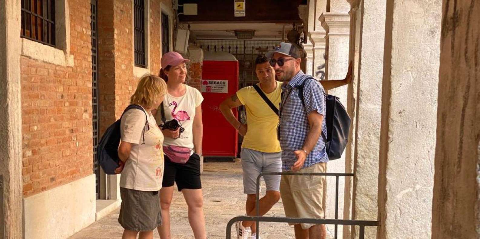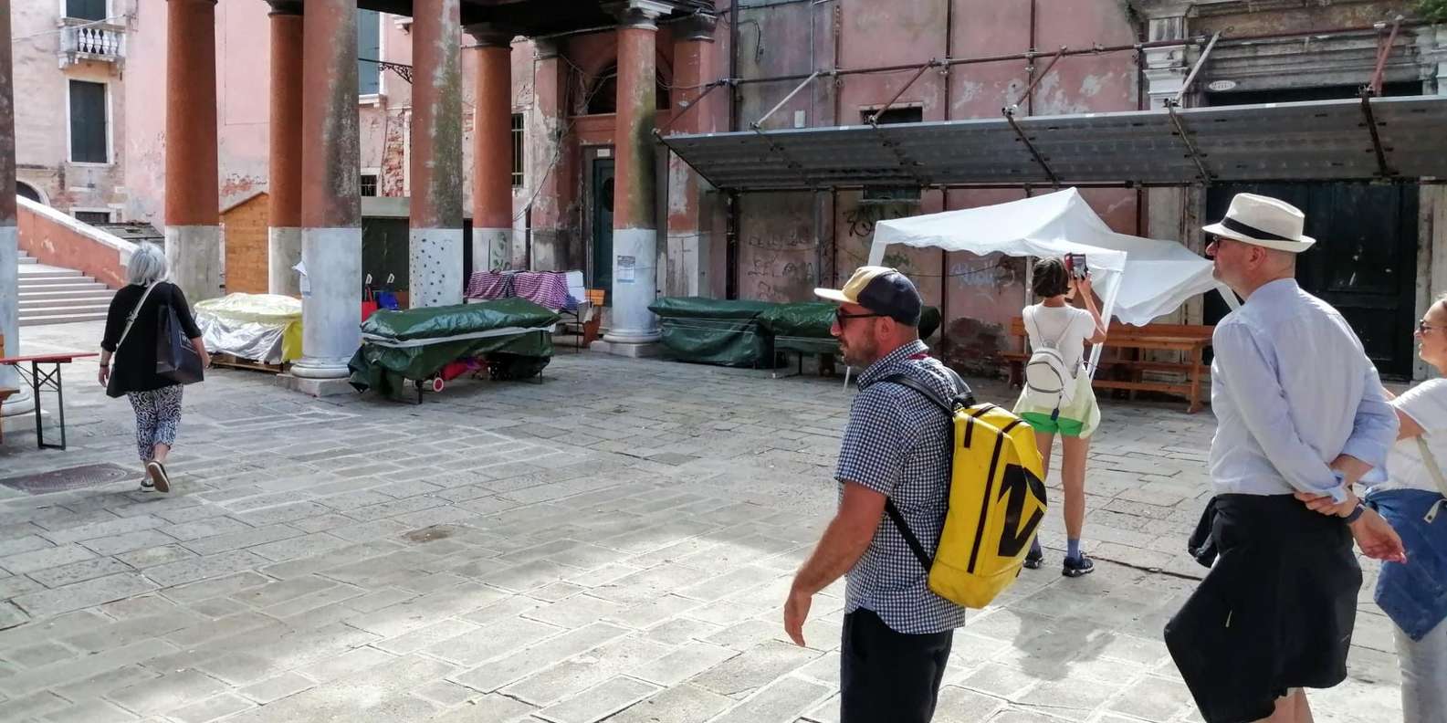 Wenn du dich außerhalb des Zentrums befindest, triffst du deinen Guide bei Combo, im Campo dei Gesuiti, im Innenhof in der Nähe des Brunnens. Bitte geh nicht zum Brunnen draußen im Campo dei Gesuiti. Gehe stattdessen durch die Tür mit dem großen Combo-Schild und du wirst deinen Guide im Innenhof treffen.