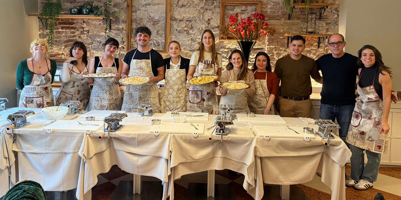Binde dir die Schürze um und begib dich in die Küche zu deinem Arbeitsplatz, wo du die berühmtesten Pastagerichte und Tiramisu der Region zubereiten wirst. Schritt für Schritt erfährst du, wie du den perfekten Nudelteig zubereitest, welche Mehlsorte du verwendest und was der Unterschied zwischen Pasta fresca und Pasta secca ist.