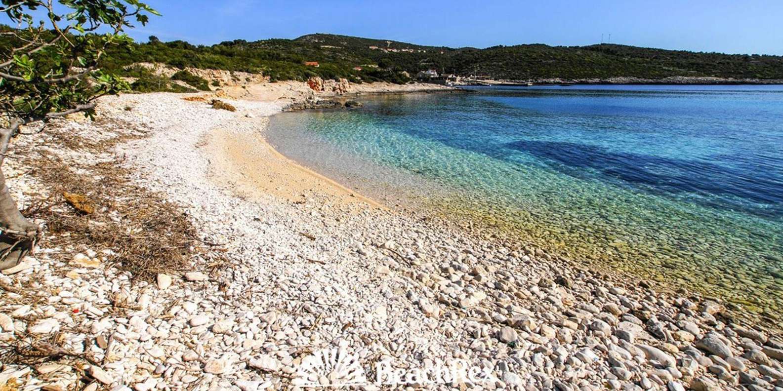 Beende die Tour an einem der seltenen Sandstrände von Vis, ideal zum Entspannen und Schwimmen im seichten, türkisfarbenen Wasser.