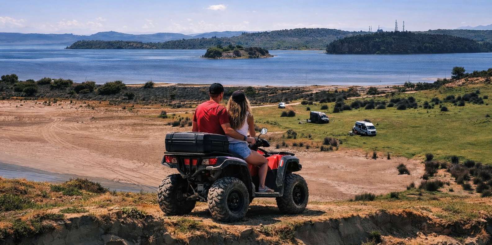 Explore the Narta Lagoon and Zvernec Island area on a quad bike tour from Vlora. Ride along scenic coastal trails, through pine forests, and sandy paths with a local guide.