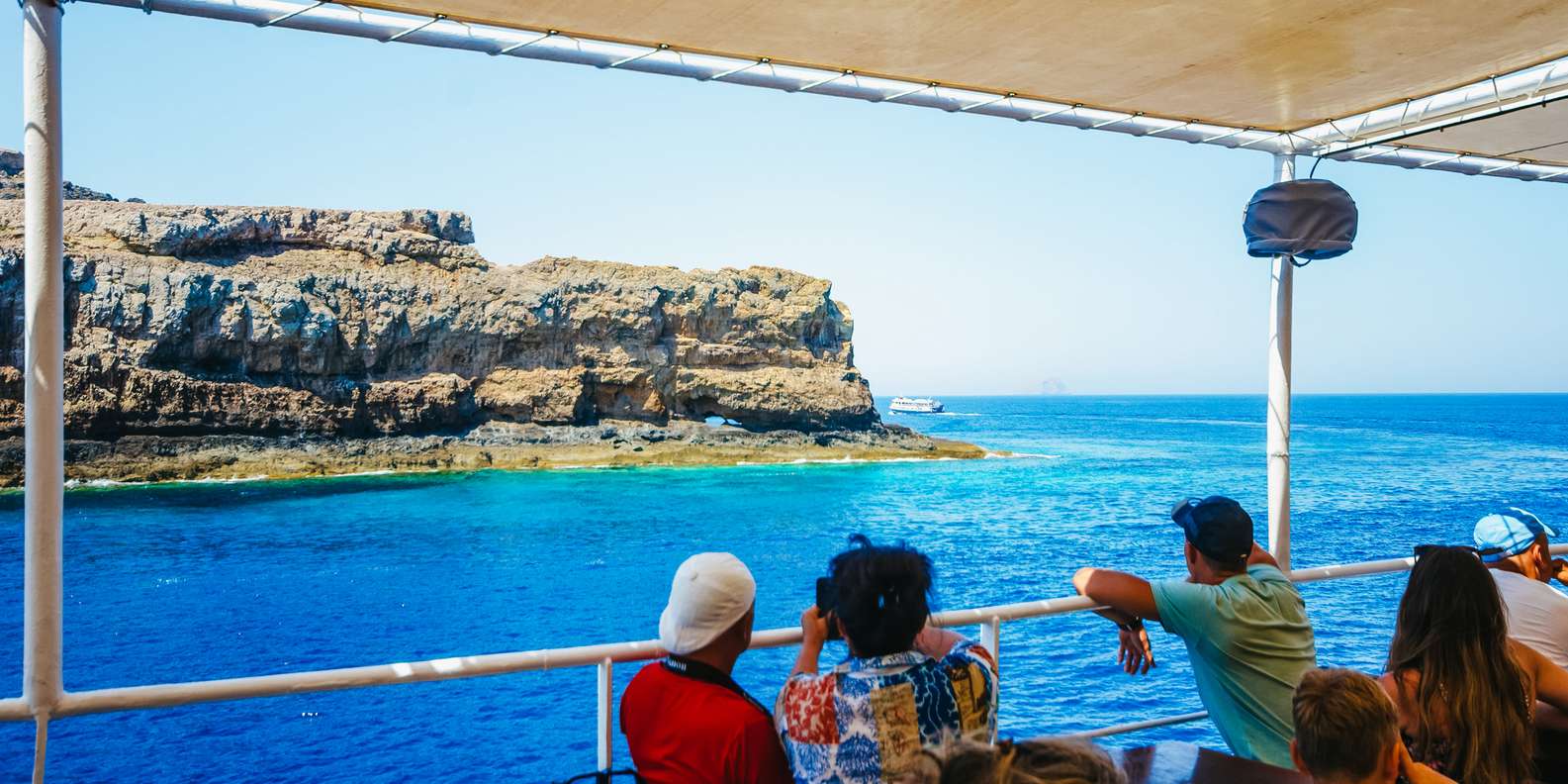 Entspann dich bei einer malerischen Bootsfahrt zur Lagune von Balos und zur Insel Gramvousa. Schwimm im smaragdgrünen Wasser, erkunde eine venezianische Burg und entdecke atemberaubende Naturschönheiten.