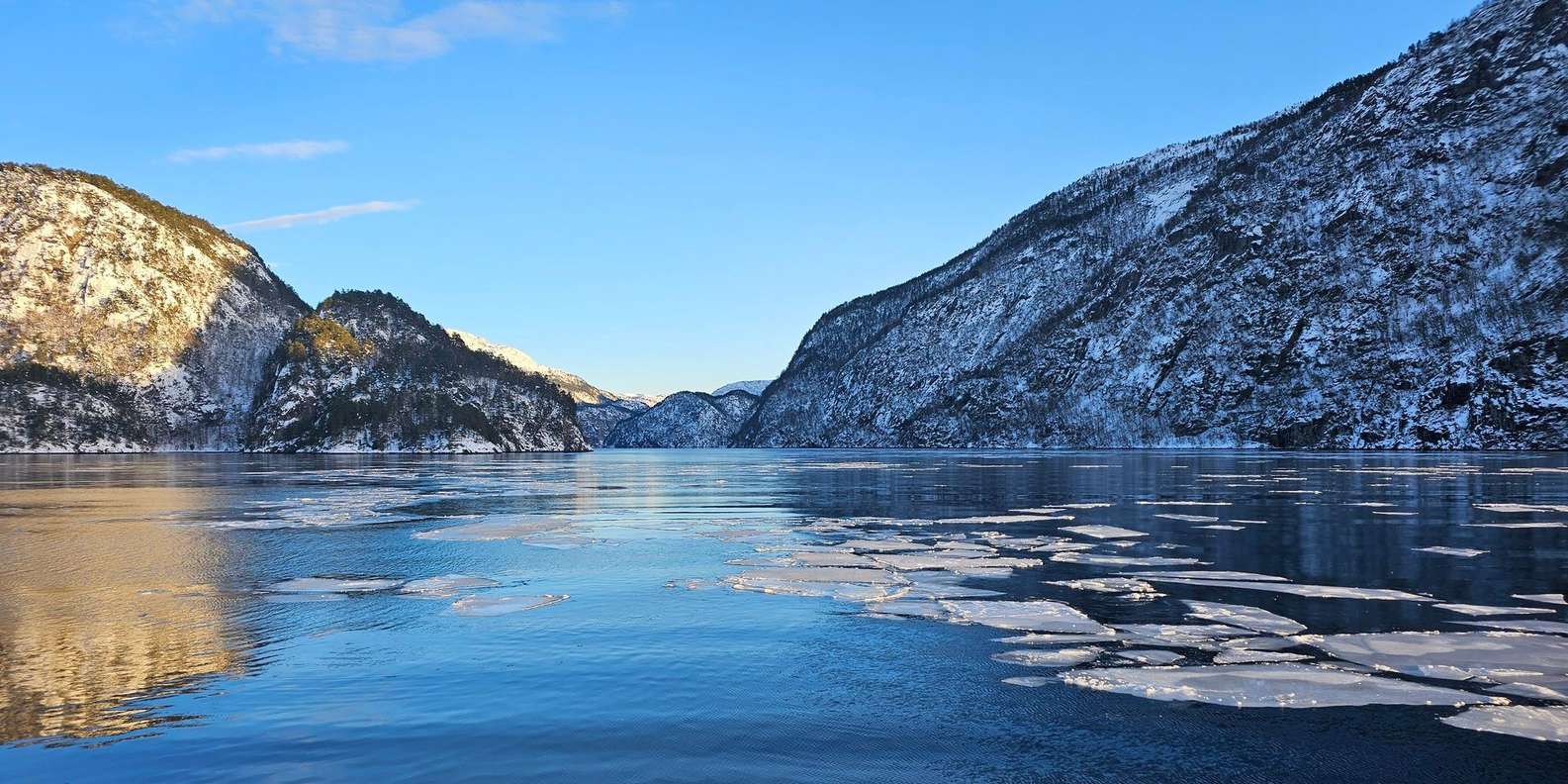 An den kältesten Tagen kann es sogar sein, dass der Fjord vereist ist, was einen besonderen Nervenkitzel bedeutet. Der Kapitän wählt dann eine alternative Route, die dir die gleichen magischen Fjord-Erlebnisse in winterlicher Landschaft bietet.