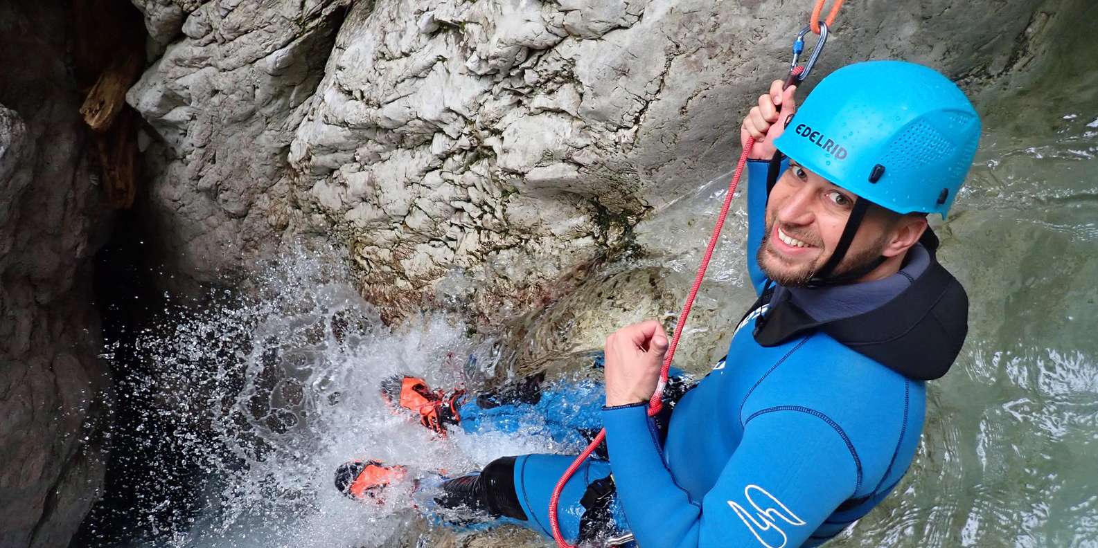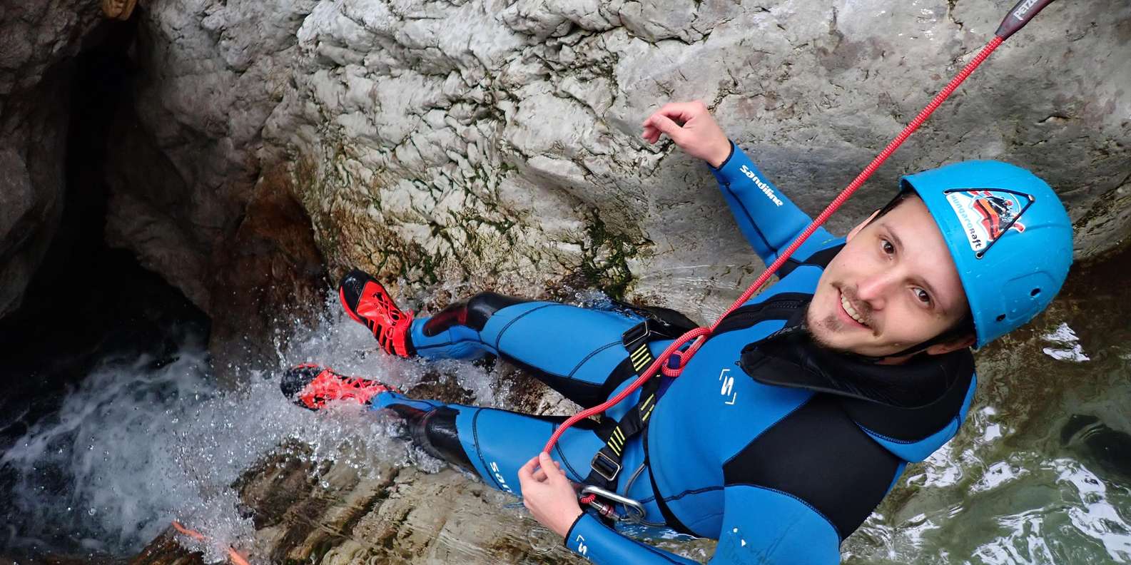 Komm zurück zur Natur auf einer atemberaubenden Canyoning Tour durch den Sušec Bach im Soča Tal. Erlebe Stromschnellen und tosende Wasserfälle an einem der schönsten Canyoning-Ziele in Europa.